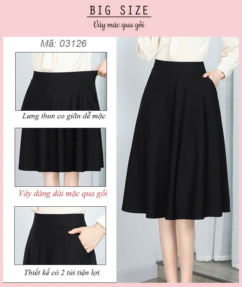 Váy công sở BIG SIZE dáng dài D1065- 2 Túi - 03126