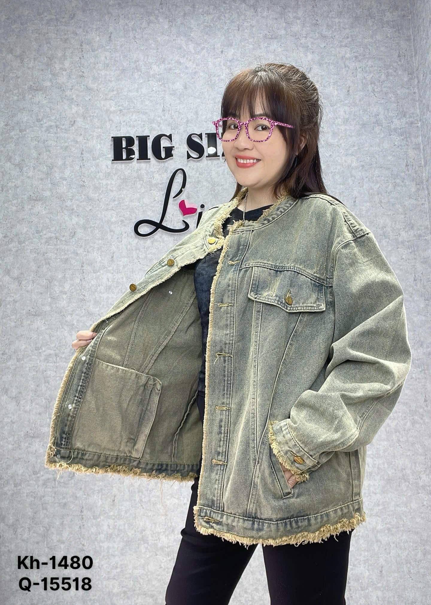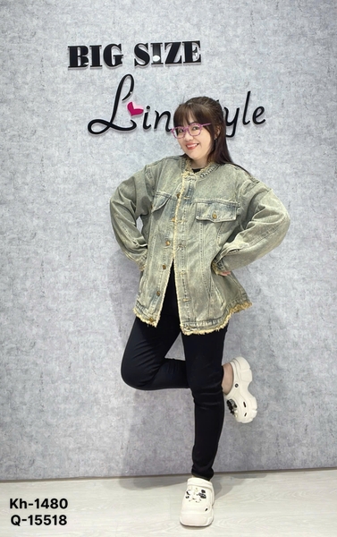 ✔Áo khoác Jean BIGSIZE QCCC ko cổ tua SIZE ĐẠI- 00320- 1480