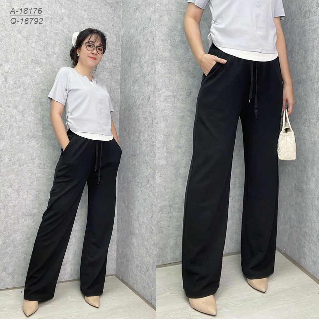 {100kg 110kg vừa} Quần Culottes Ống Suông Bigsize Nữ Cạp Cao LinhStyle - Ống Suông Rộng Thun Cạp Lưng Cao - 16792