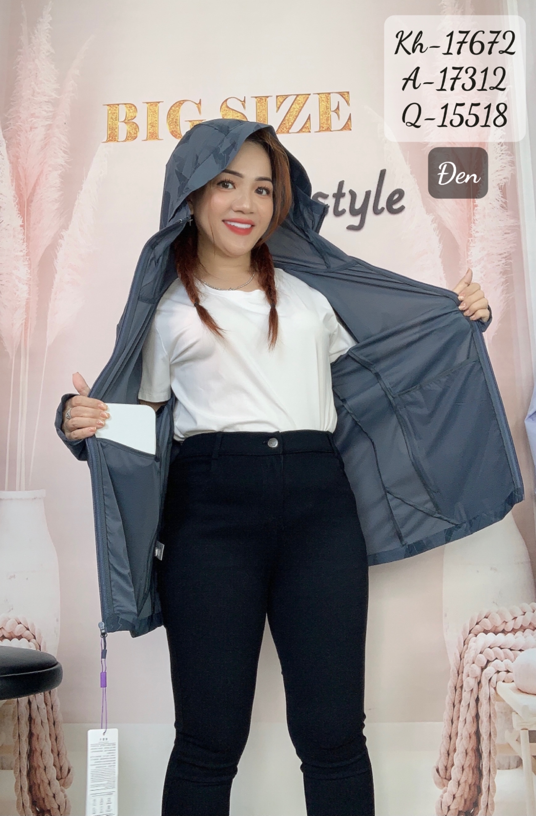 Ngực = Hông 110~130, Bắp 40~48, Dài 67cm