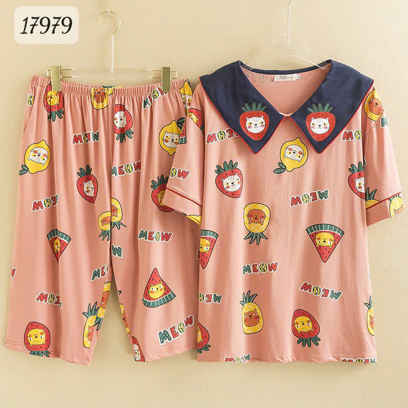 ✔ Bộ lửng BIGSIZE QCCC thun cotton mịn đẹp loại 1 thấm hút mồ hôi tốt trái cây dễ thương SL.DAI 110kg - 17979