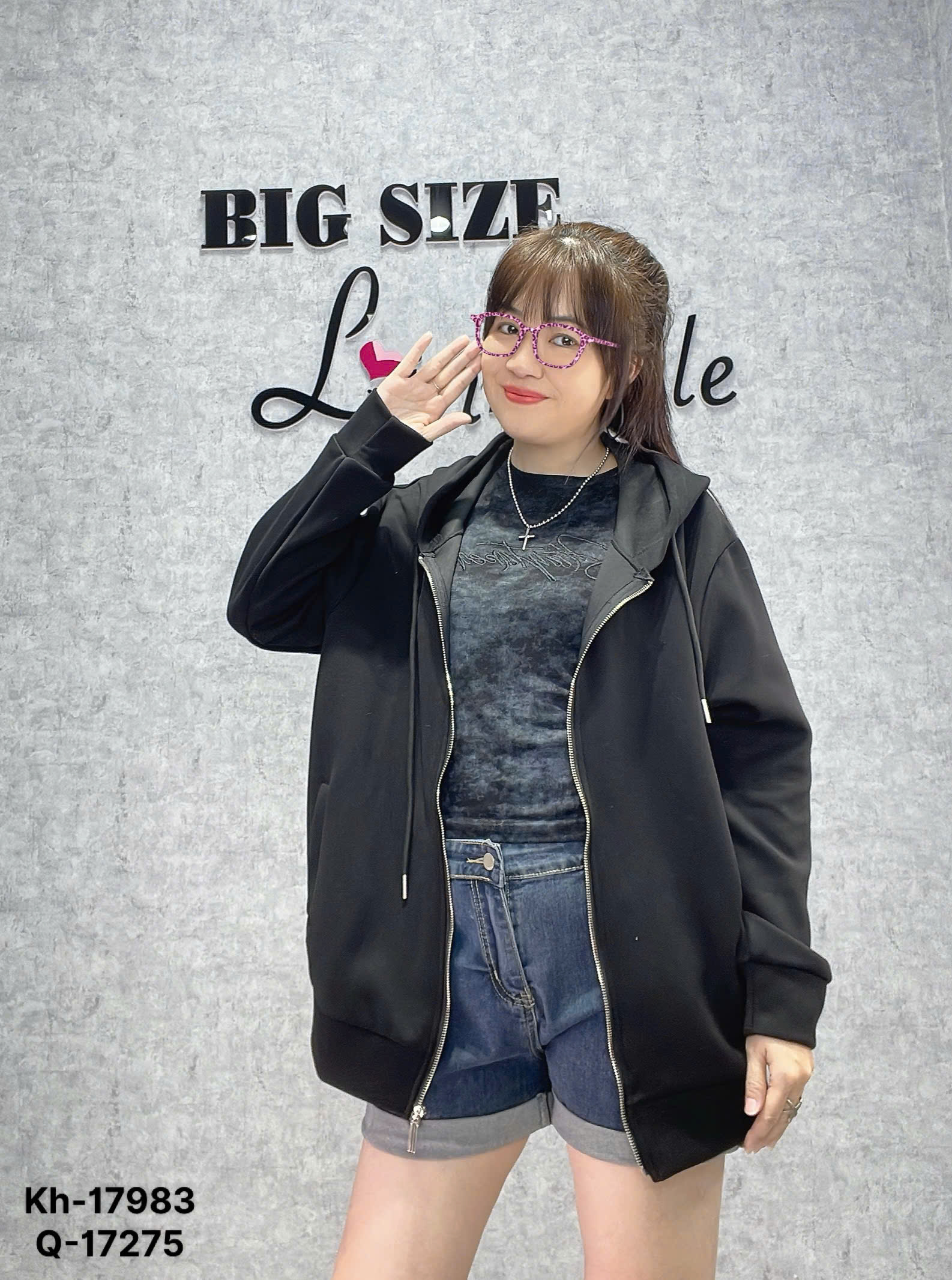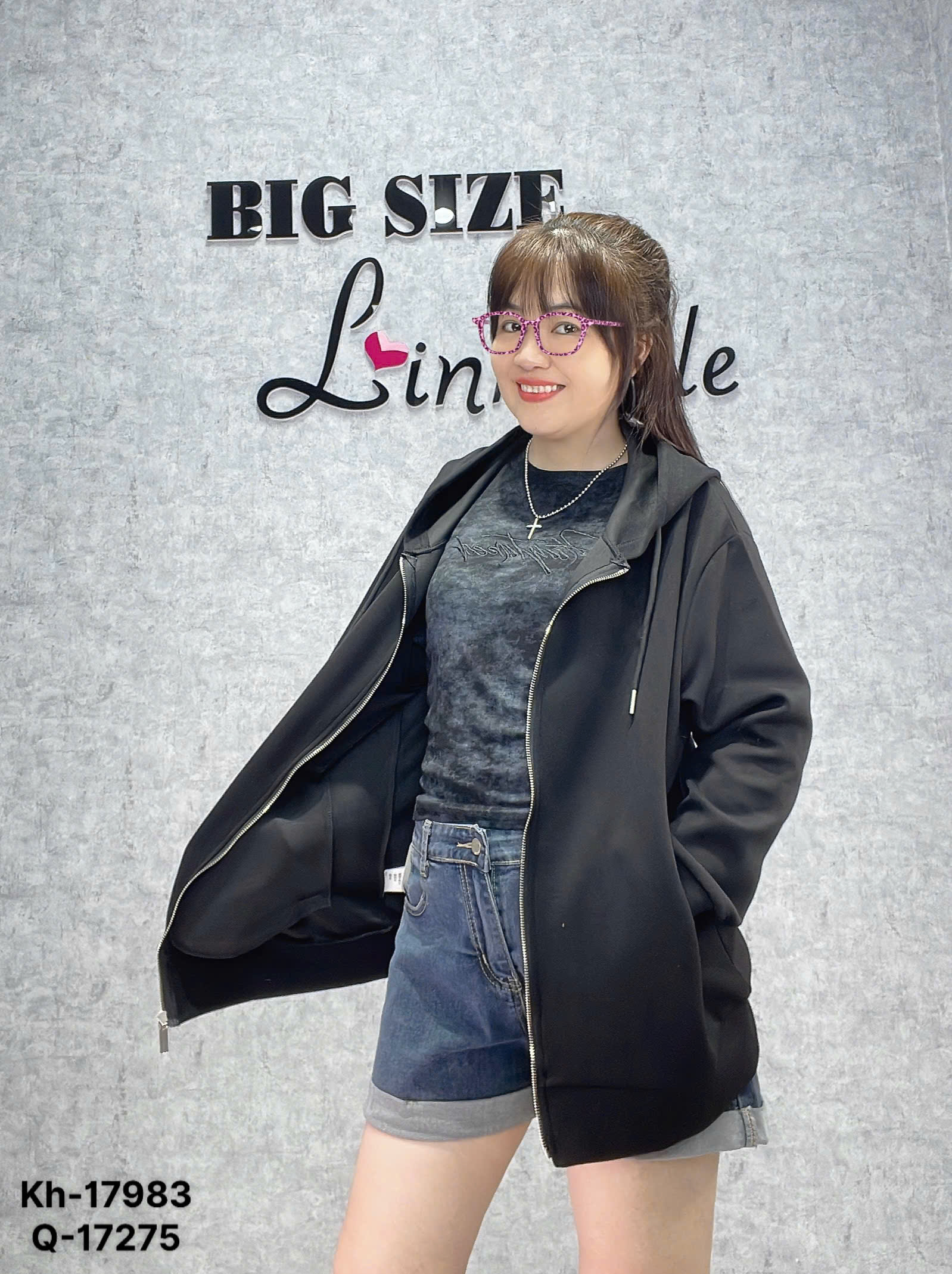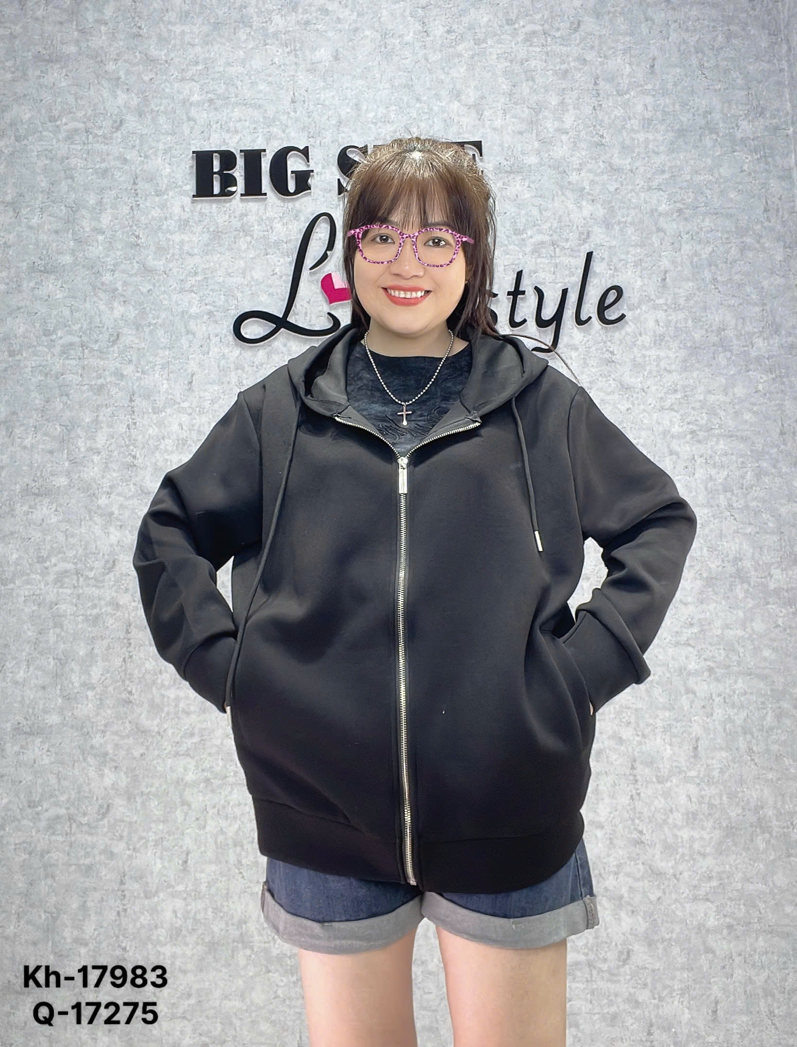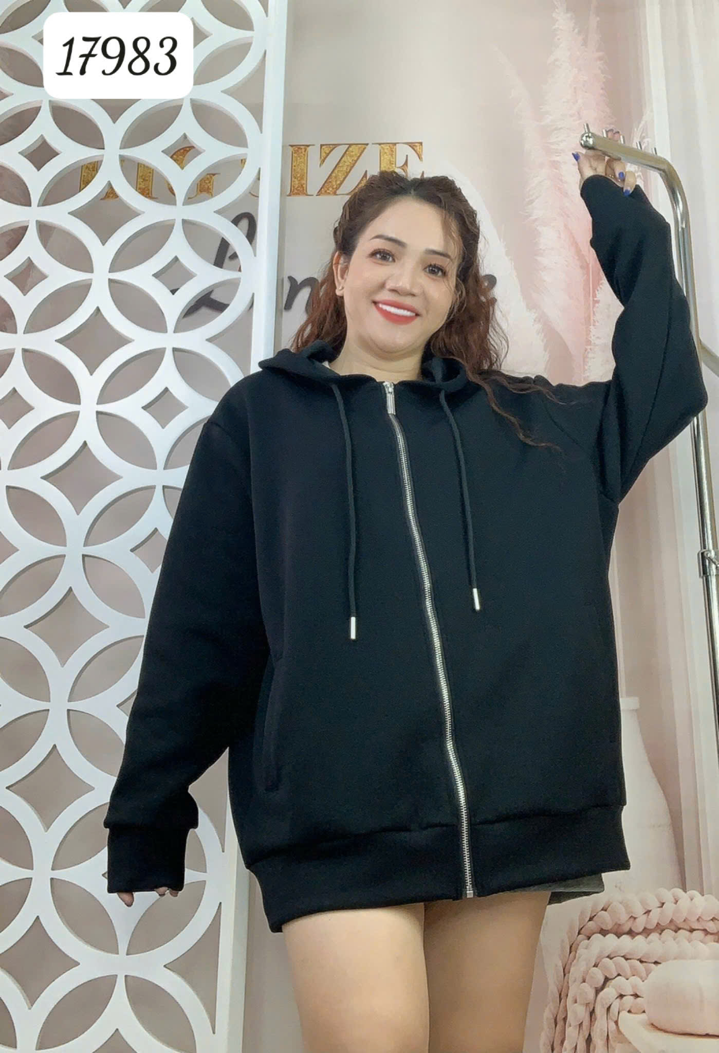 Áo khoác Hoodies BIGSIZE Quảng Châu trơn màu BASIC - 17983 ĐEN
