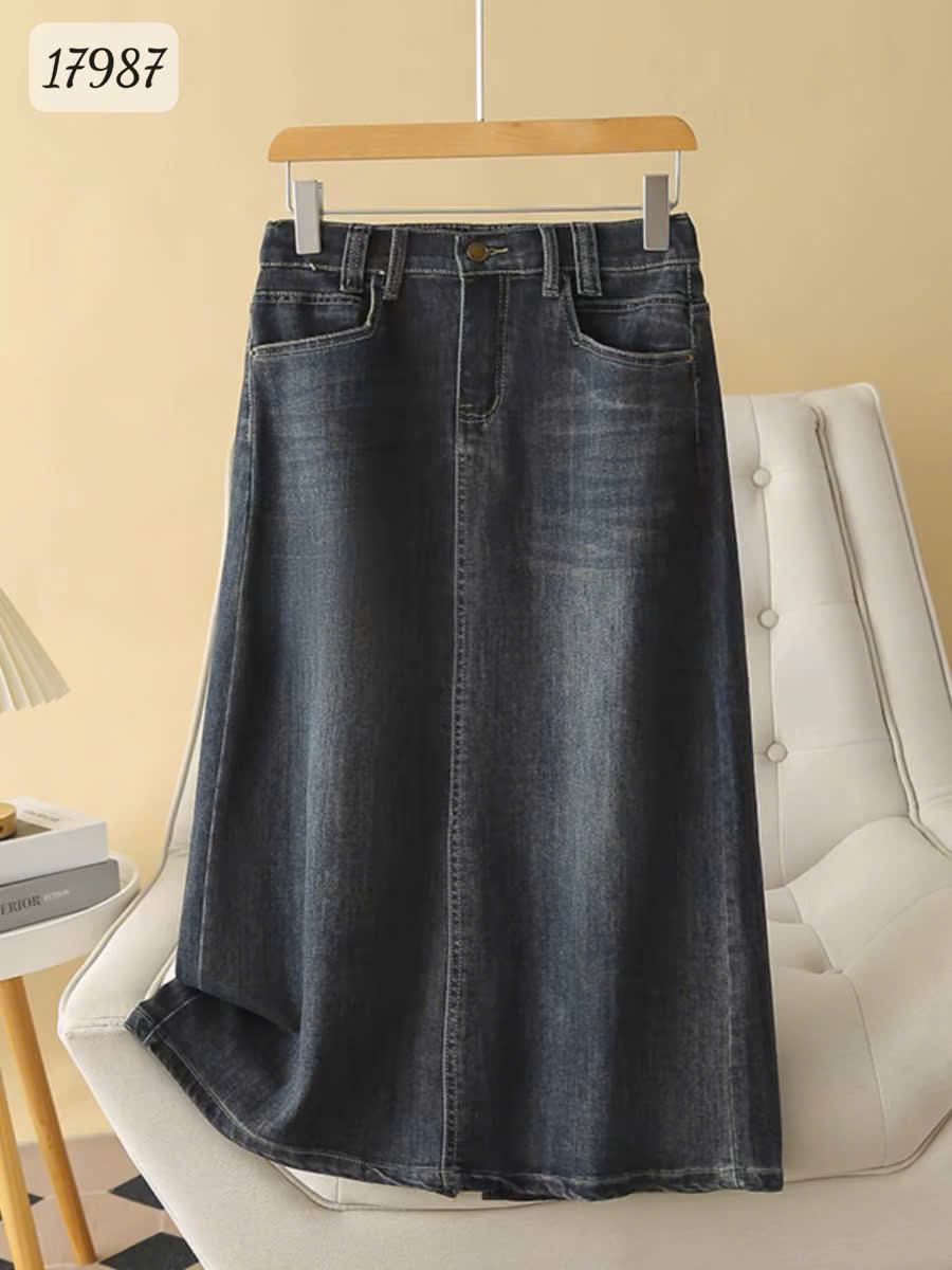 ✔ Váy dài Jean BIGSIZE Quảng Châu 2 túi, xẻ sau chất đẹp - 17987