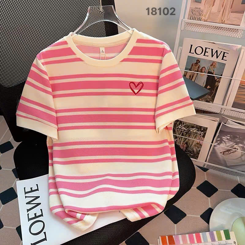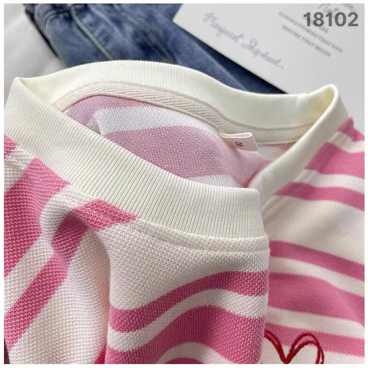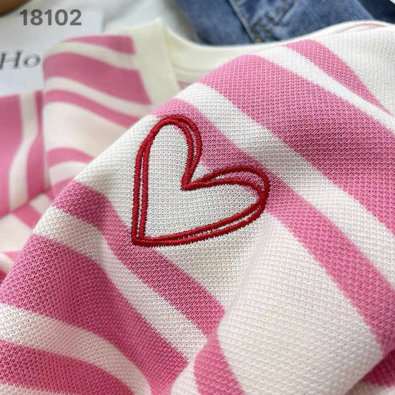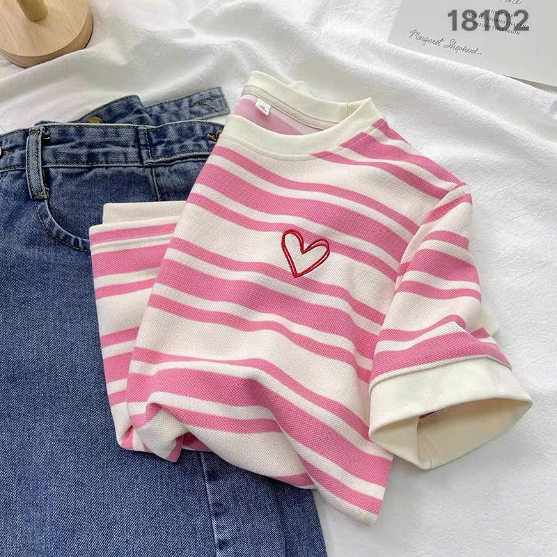 ✔ Áo thun BIGSIZE Quảng Châu sọc thêu tim chất đẹp co giãn