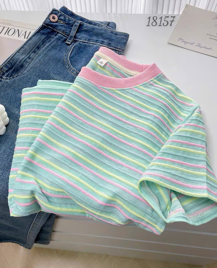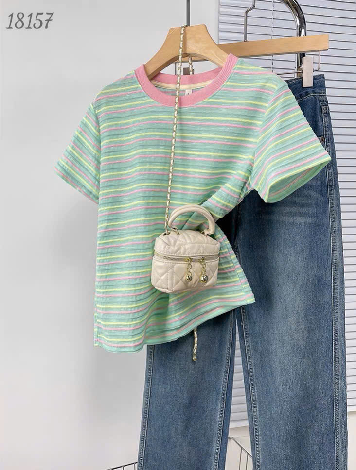 ✔ Áo thun BIGSIZE Quảng Châu kẻ Sọc sắc màu Ngọt Ngào dễ thương - 18157
