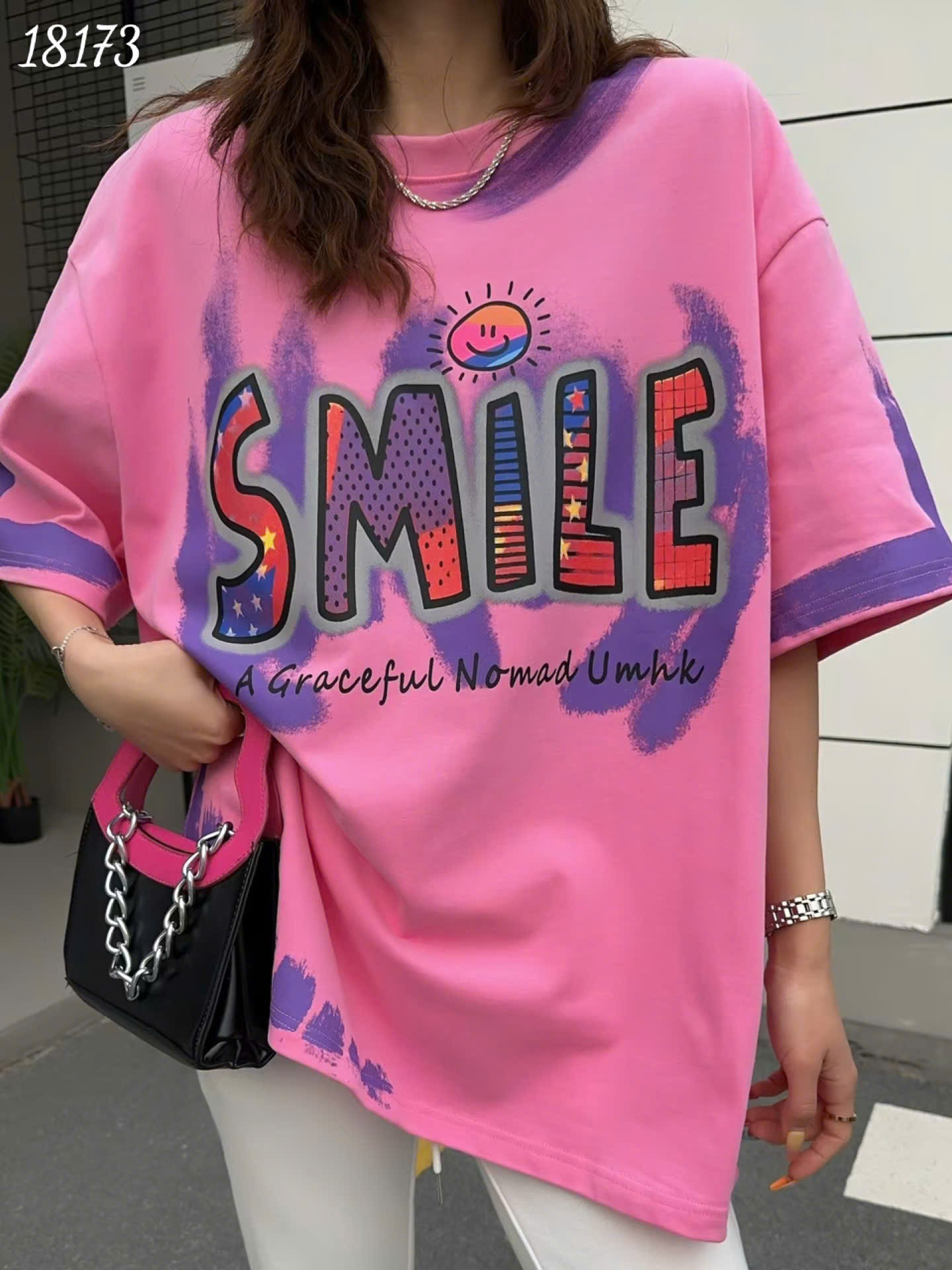 ✔ Áo thun BIGSIZE Quảng Châu OVS Oversize chữ SMILE chất co giãn -18173