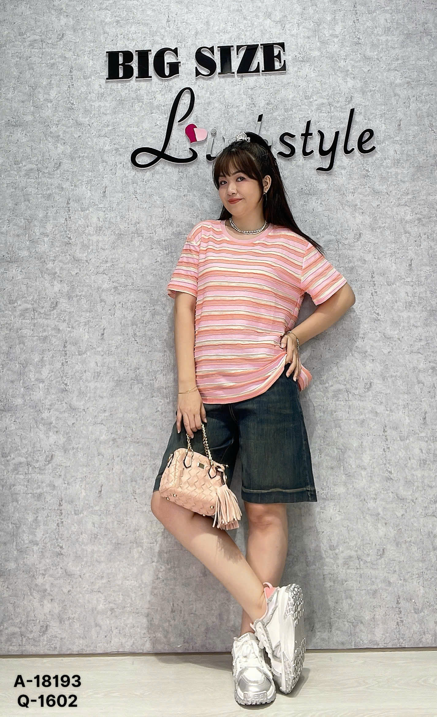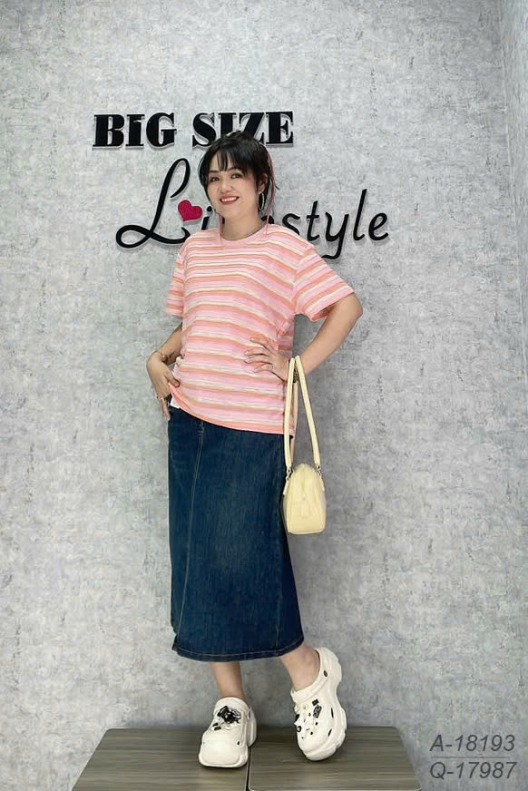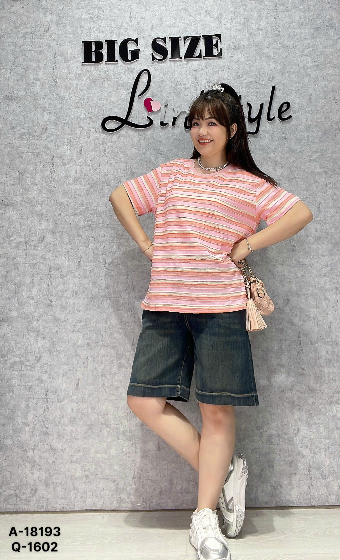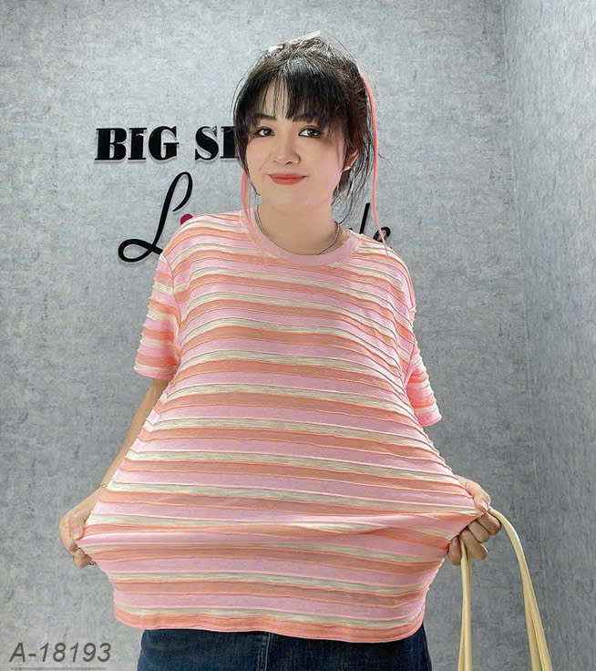 Áo thun BIGSIZE Quảng Châu kẻ Sọc sắc màu Ngọt Ngào dễ thương - 18193