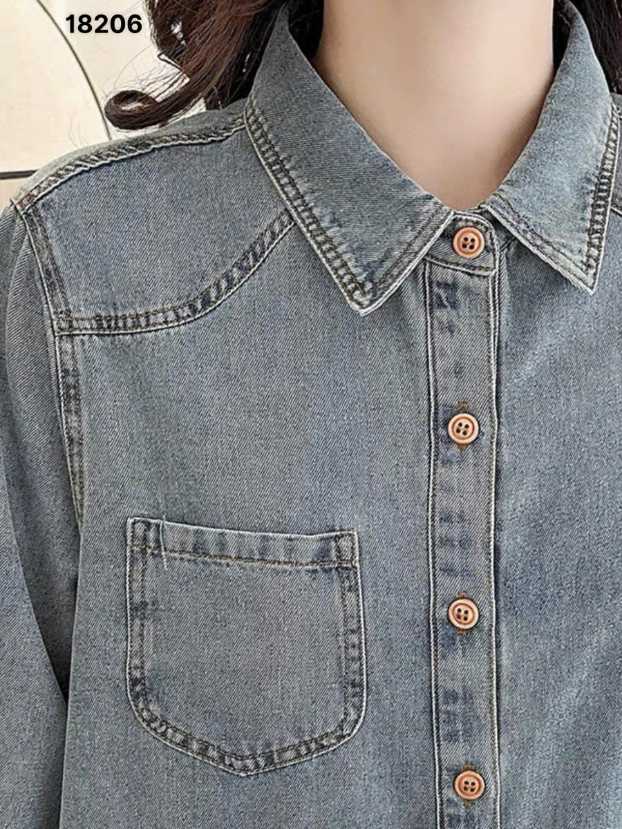 ✔ Áo Sơ Mi Somi Jean TD Bigsize QC, tay dài 1 túi - 18206