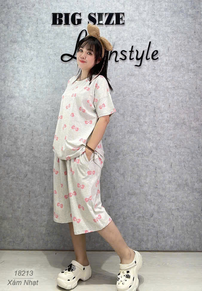 ✔ Bộ lửng BIGSIZE QCCC thun cotton mịn đẹp loại 1 thấm hút mồ hôi tốt, in hình Tho- Nơ nhiều SL.DAI 100kg 110kg - 18213