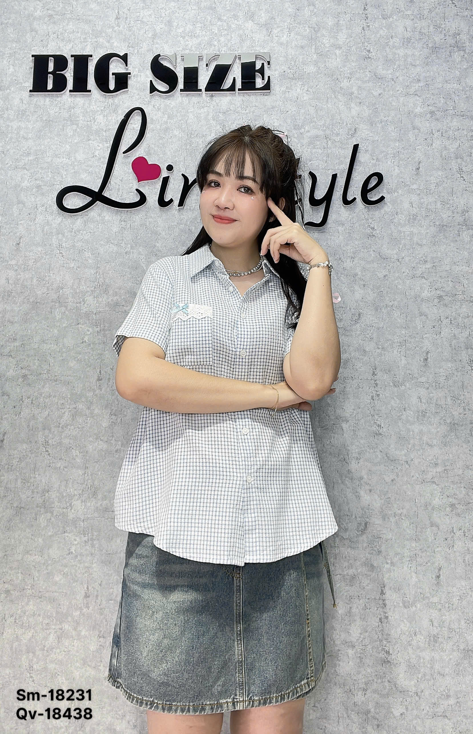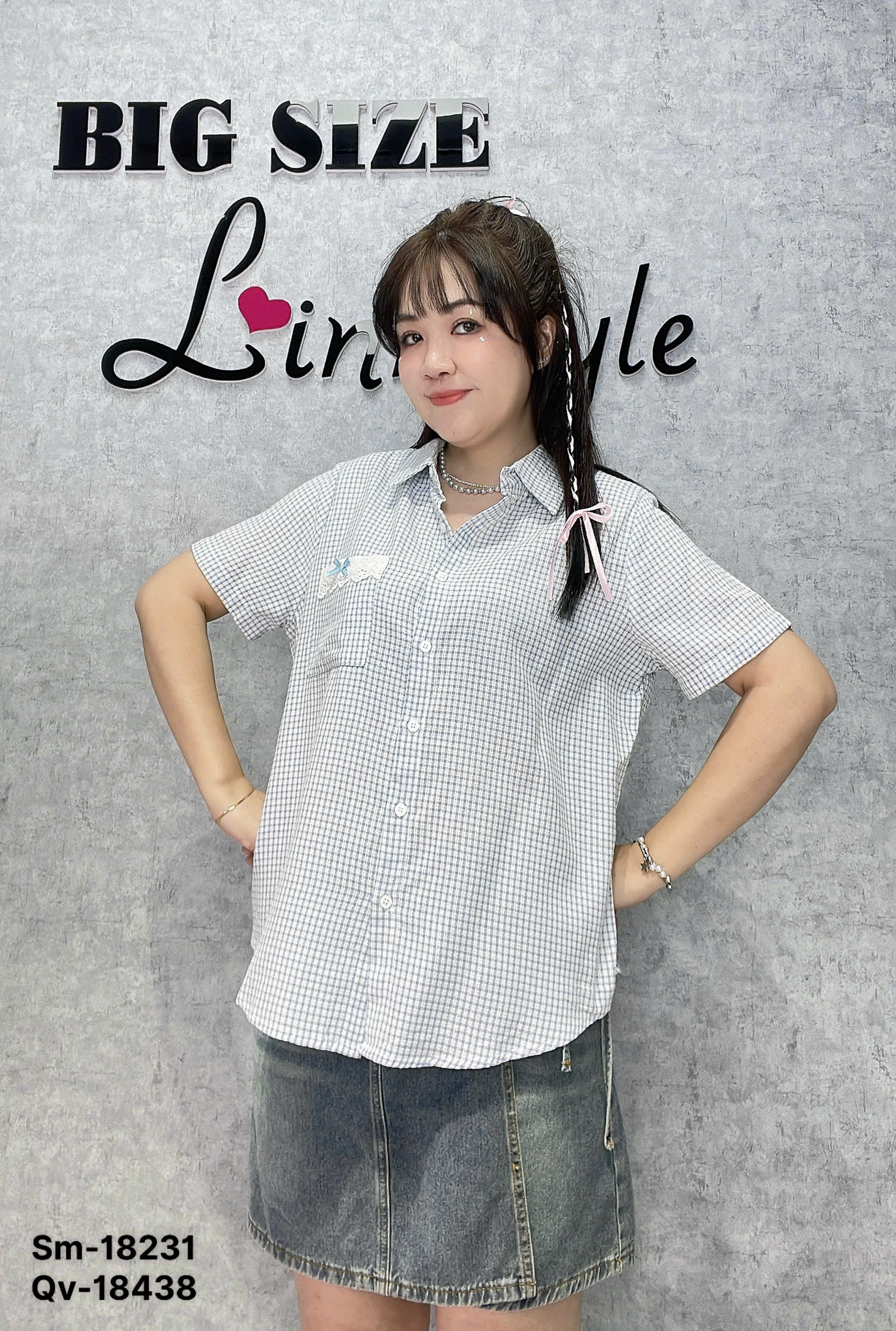 ✔️ { 60kg - 100kg } Áo Sơ Mi Bigsize QC Nữ Caro CR túi Ren Nơ Cao Cấp chất đẹp mặc mát - 18231