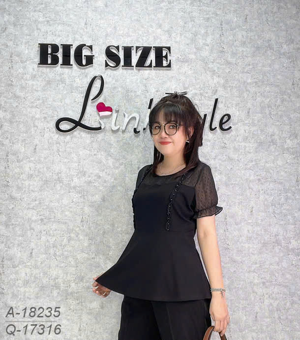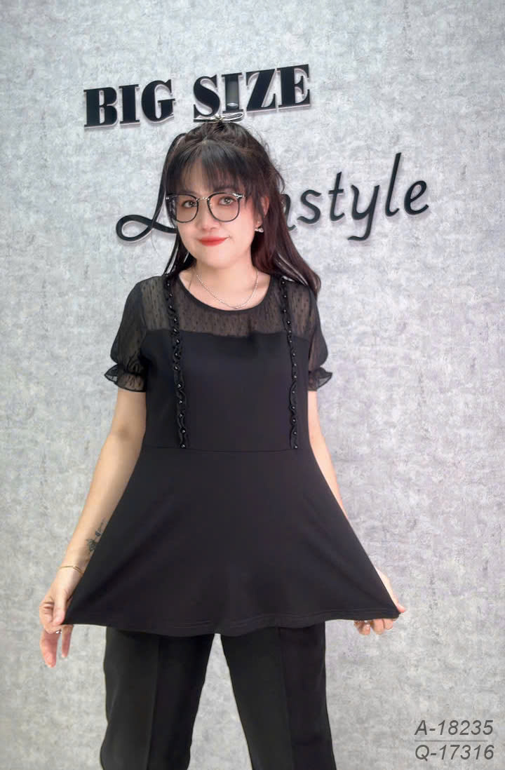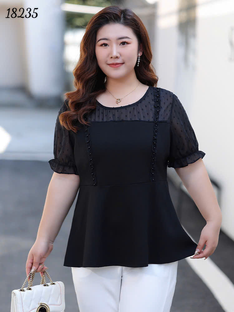 ✔Áo kiểu BIGSIZE peplum che bụng, phối ren trẻ trung, nữ tính 18235