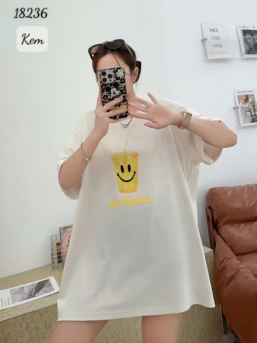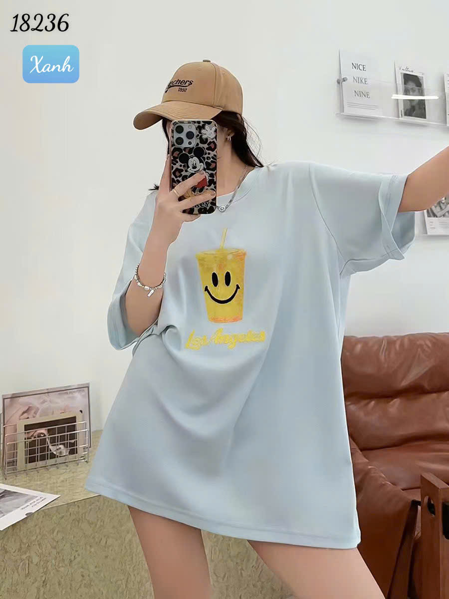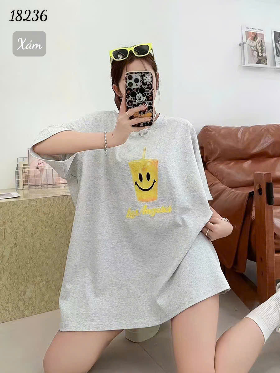 ✔ Áo phông OverSize BIGSIZE QCCC thun cotton đẹp hình Ly mặt cười - 18236