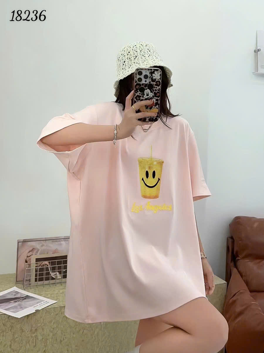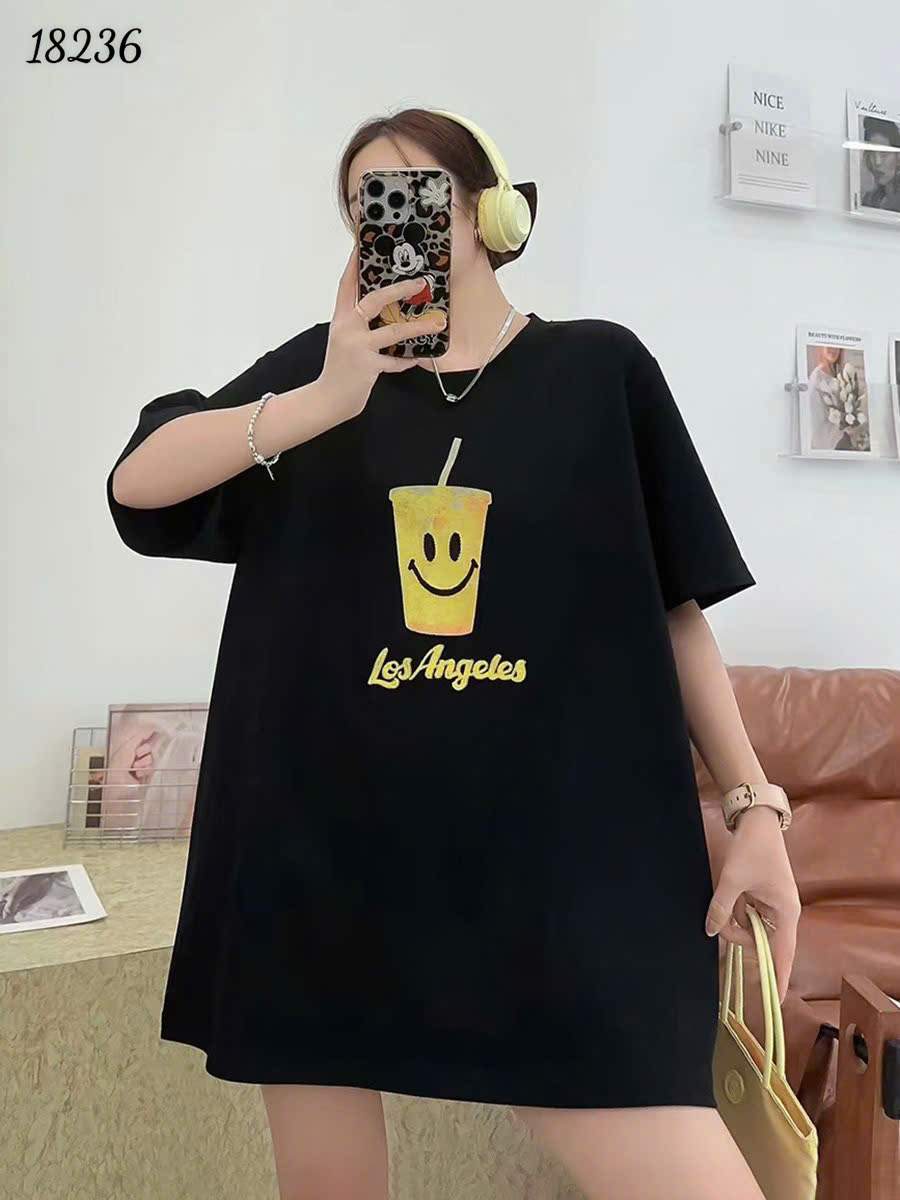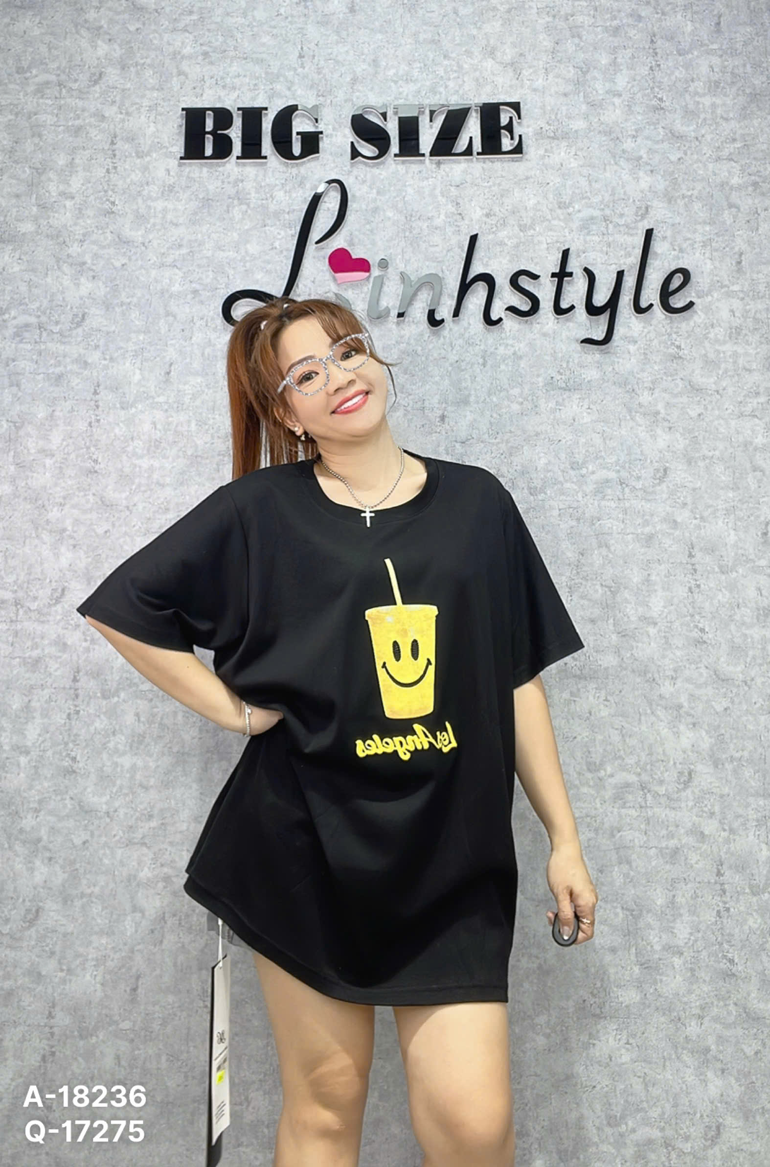 ✔ Áo phông OverSize BIGSIZE QCCC thun cotton đẹp hình Ly mặt cười - 18236