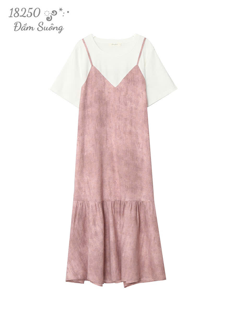 SALE - 18250 Đầm Yếm 00424 suông DC - HỒNG