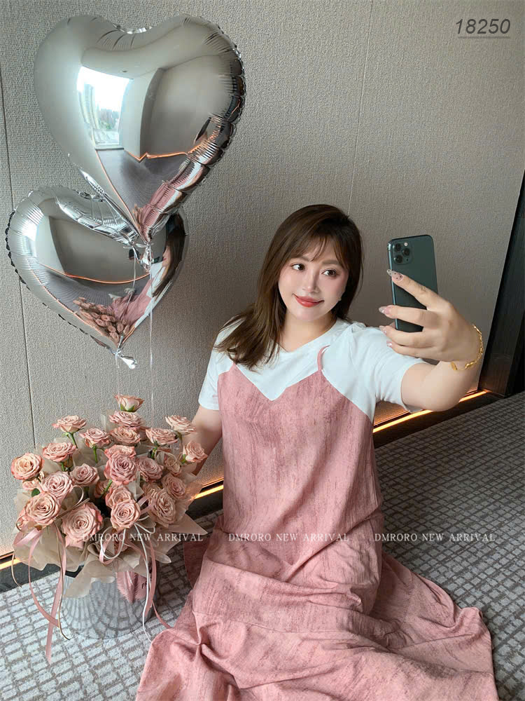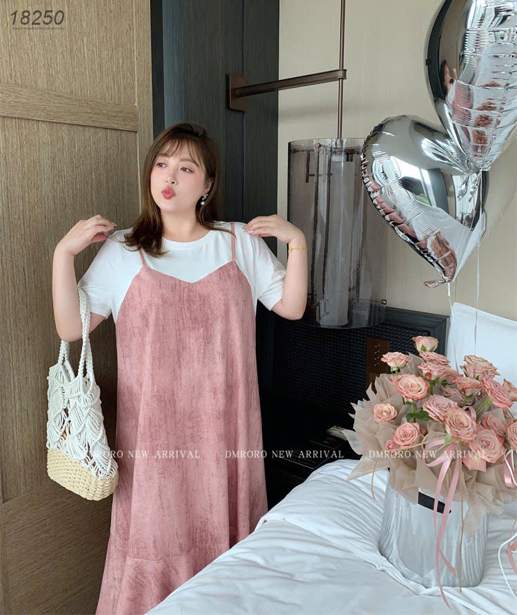 ✔ Đầm yếm BIGSIZE Quảng Châu dáng suông, dài qua gối 2d - 18250