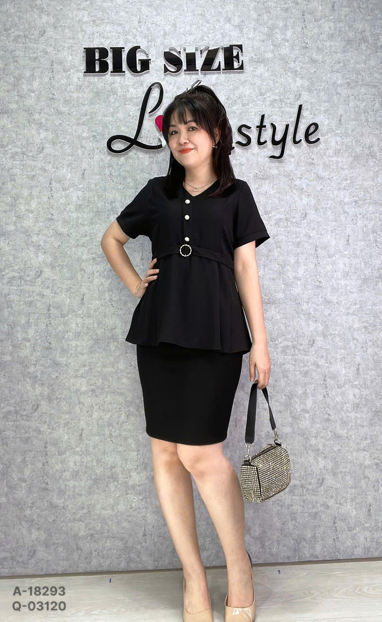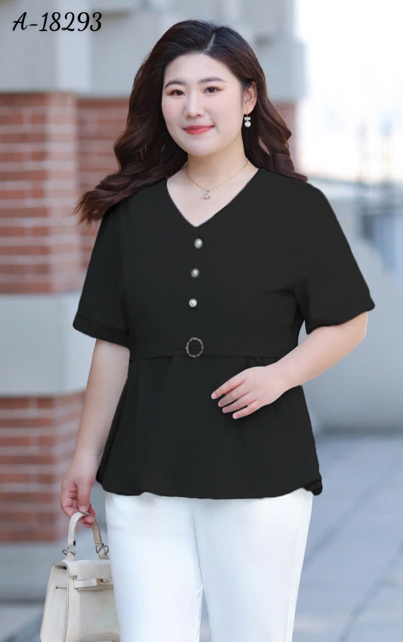 ✔ Áo kiểu Peplum eo nịch, cổ V BIGSIZE- 18293