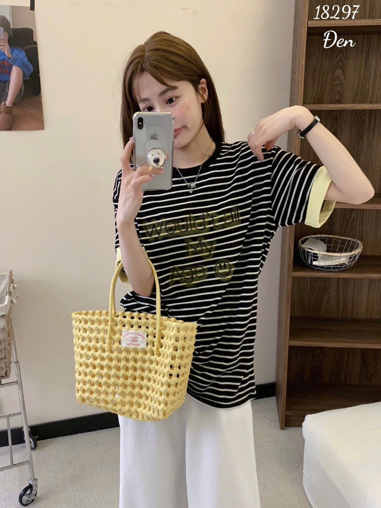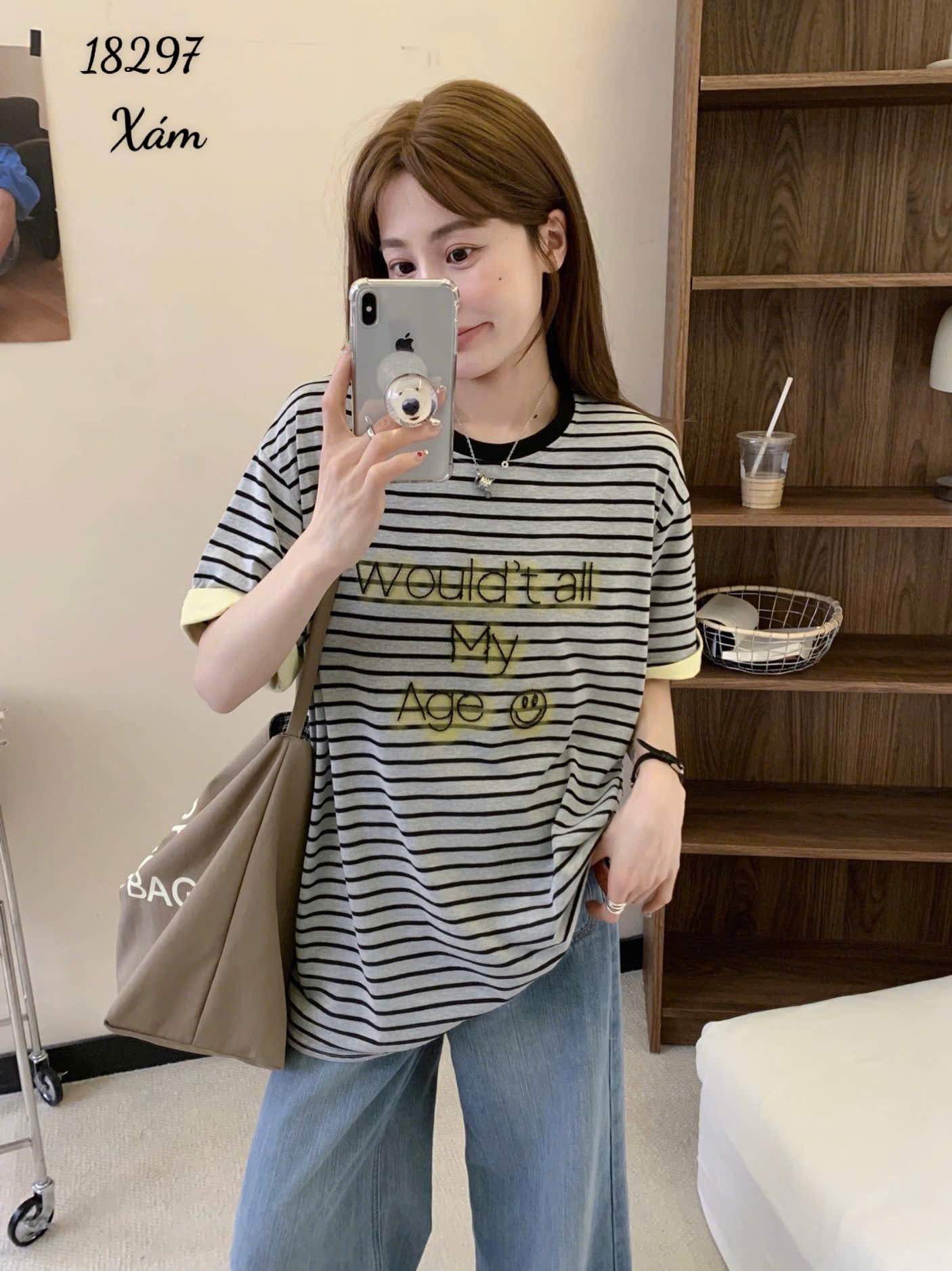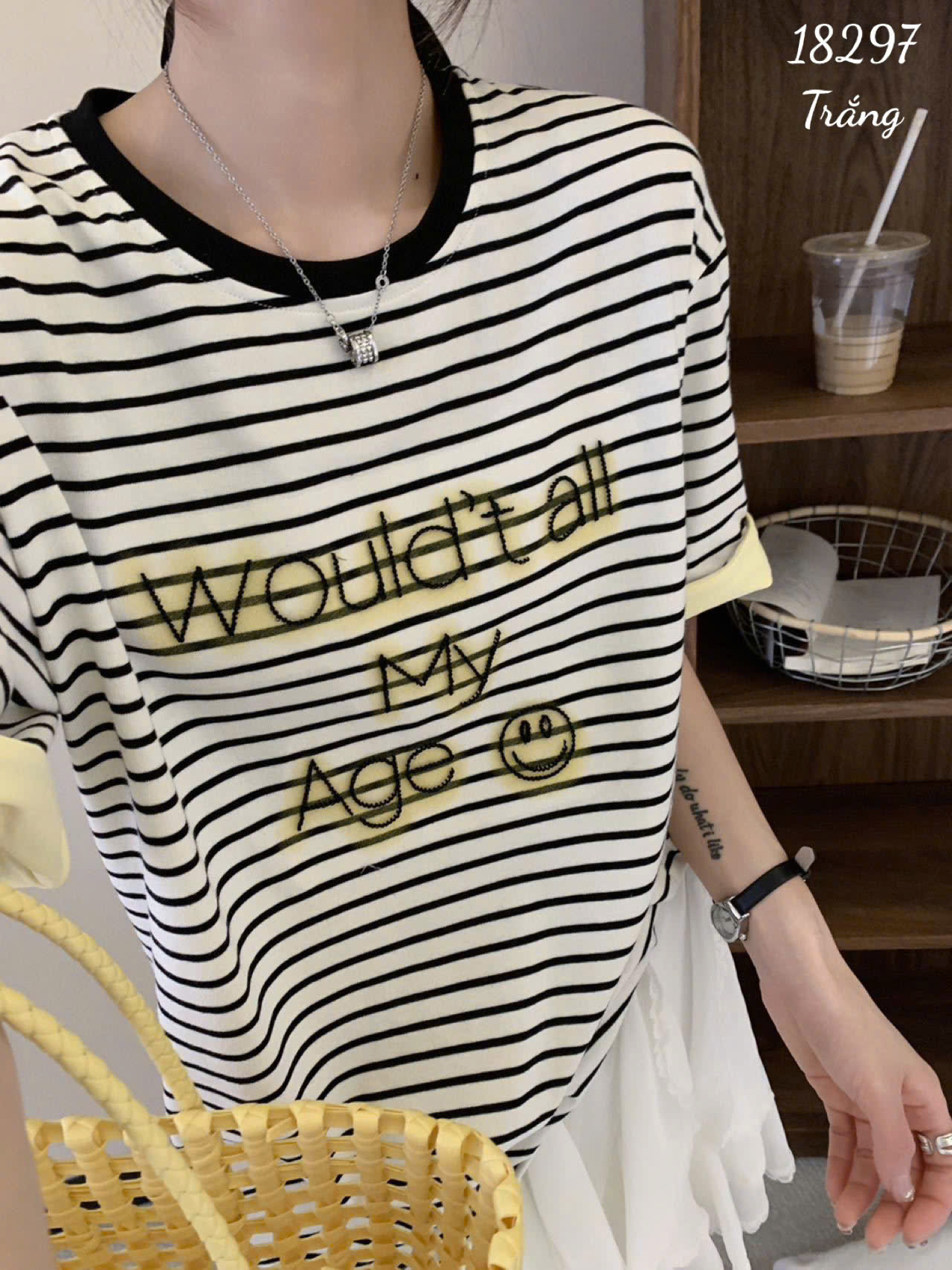 ✔ Áo thun cổ tròn BIGSIZE QCCC chất đẹp, sọc thêu Age - 18297
