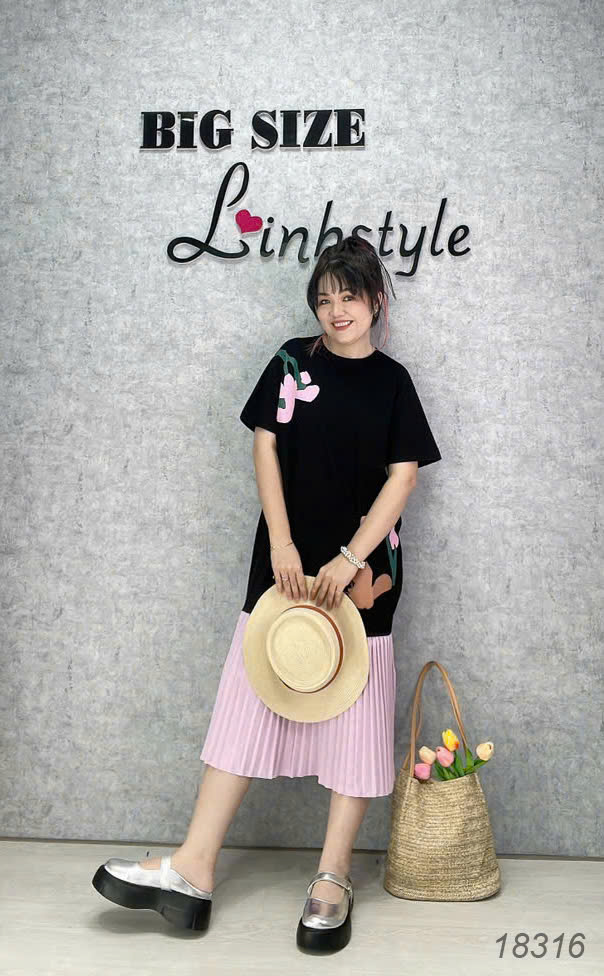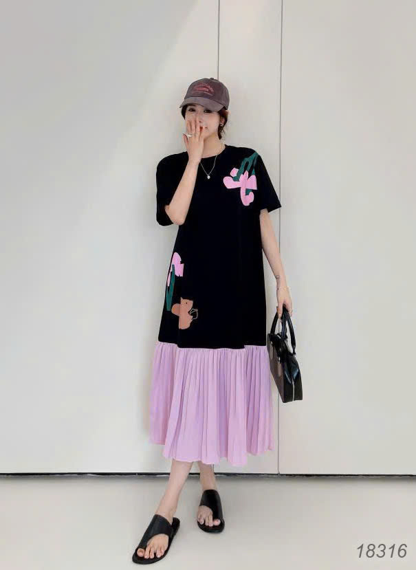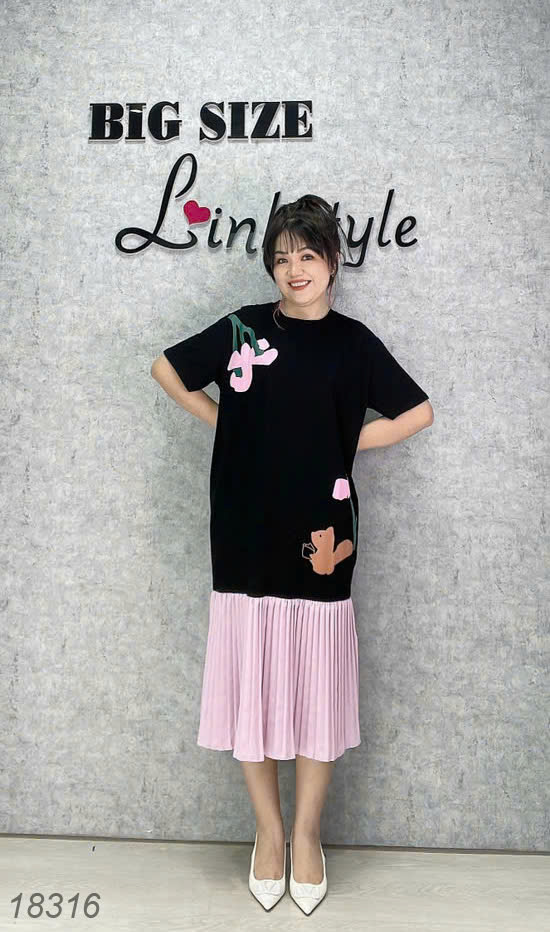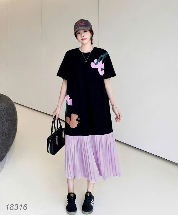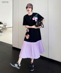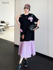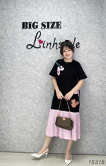✔ Đầm phối màu x.li Tím, che bụng BIGSIZE Quảng Châu chất đẹp - 18316