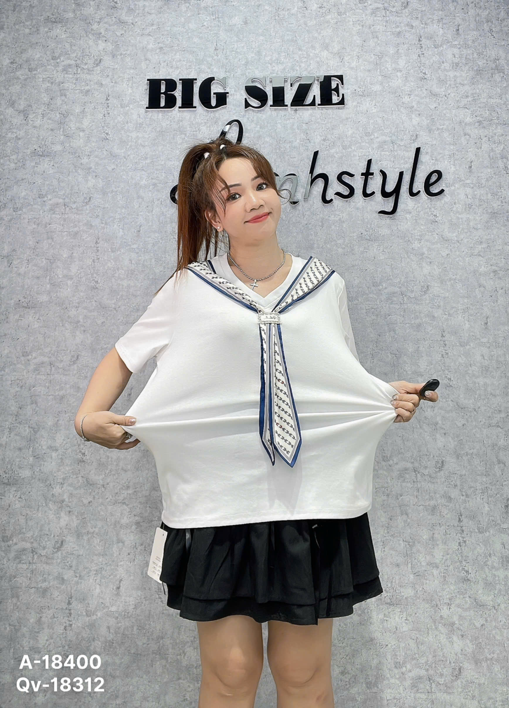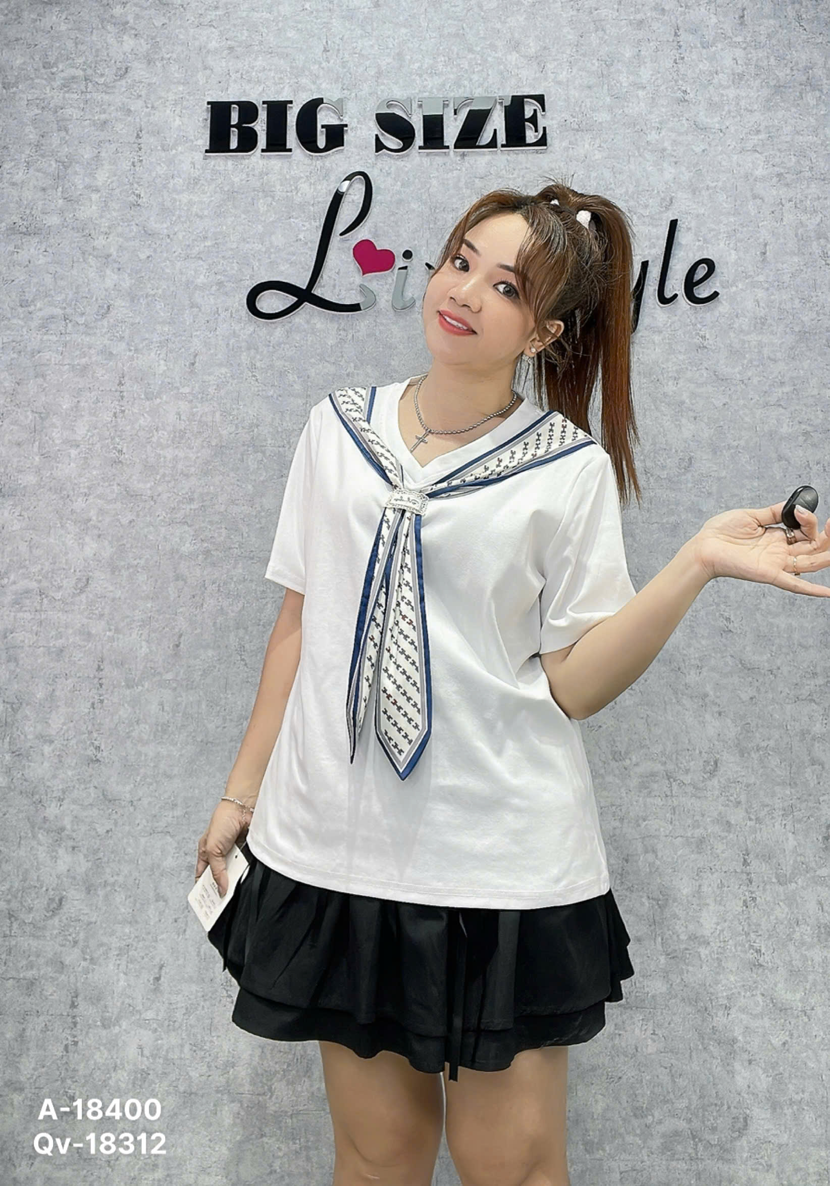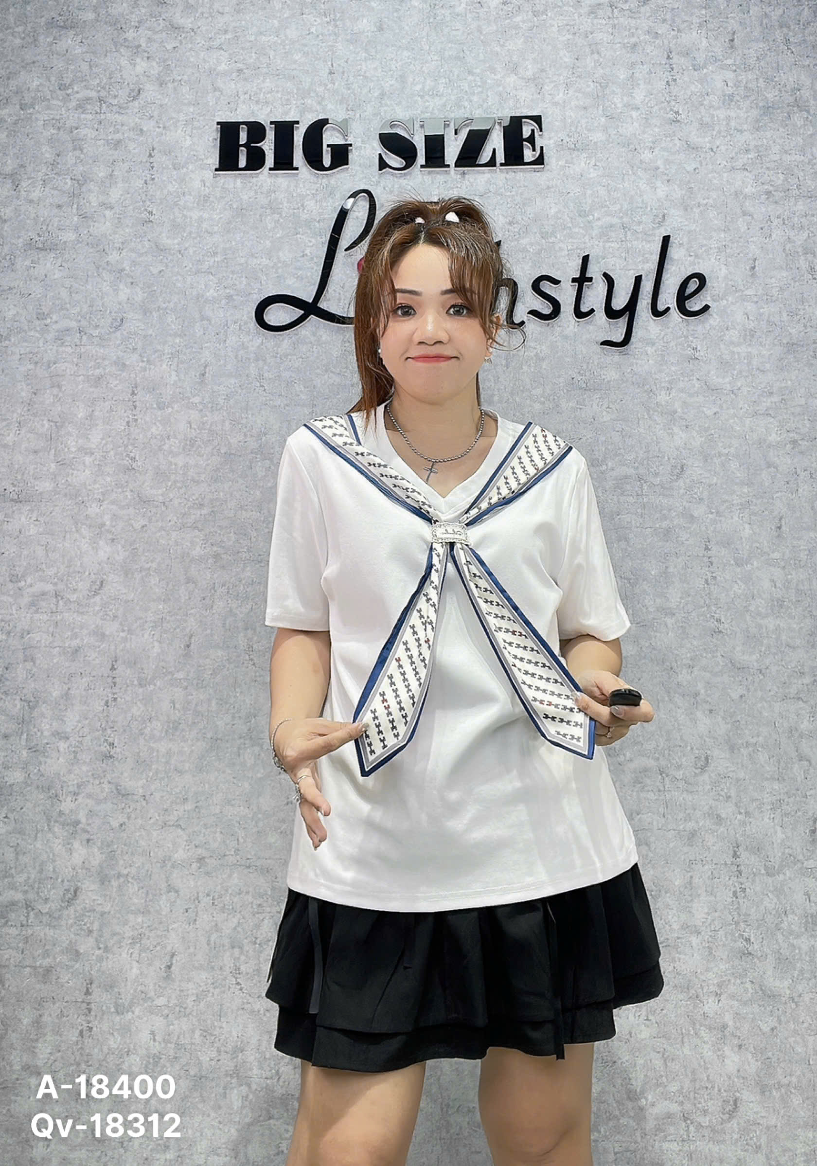 Áo thun thuỷ thủ, cổ tim 00270 BIGSIZE Quảng Châu- 18400- TRẮNG