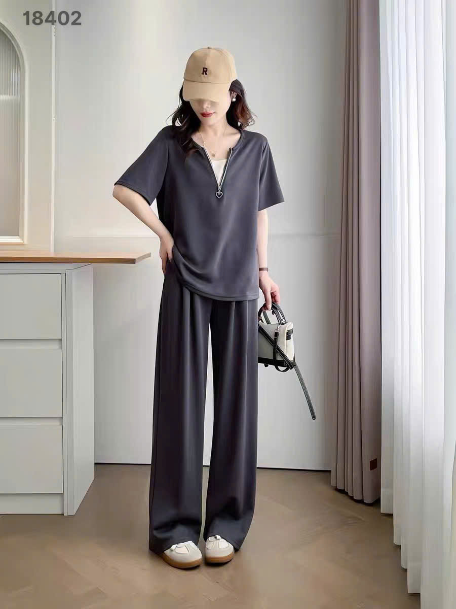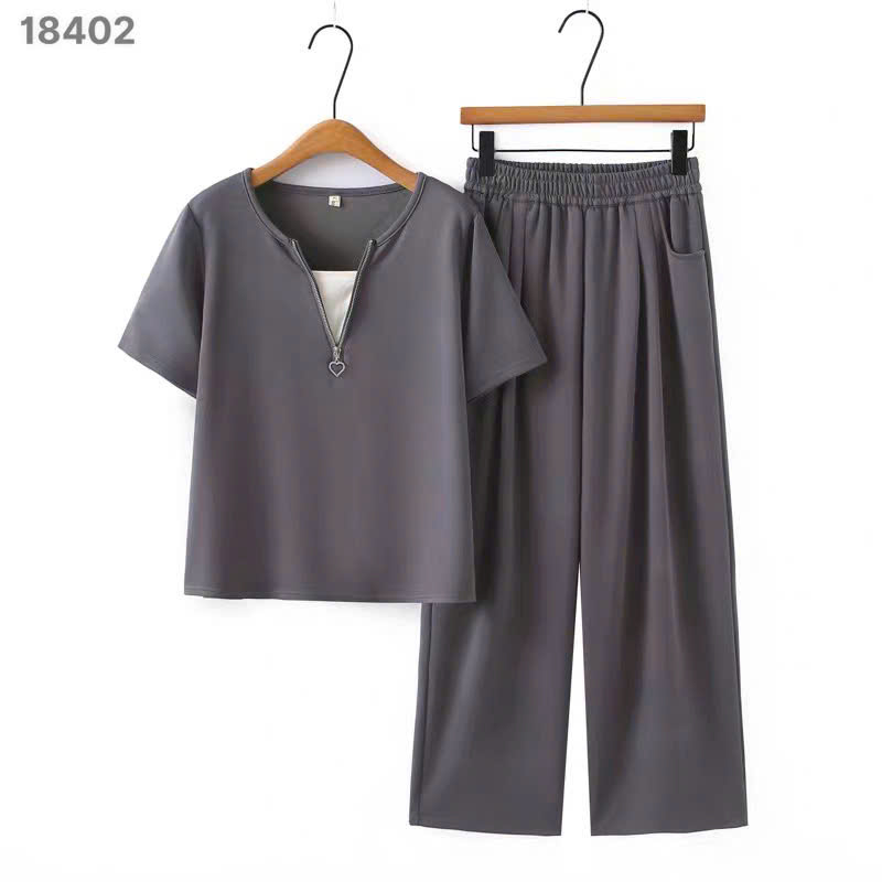 ✔ Bộ quần dài BIGSIZE QCCC màu trơn áo thiết kế khoá kéo cotton mềm mịn co giãn nhiều - 18402