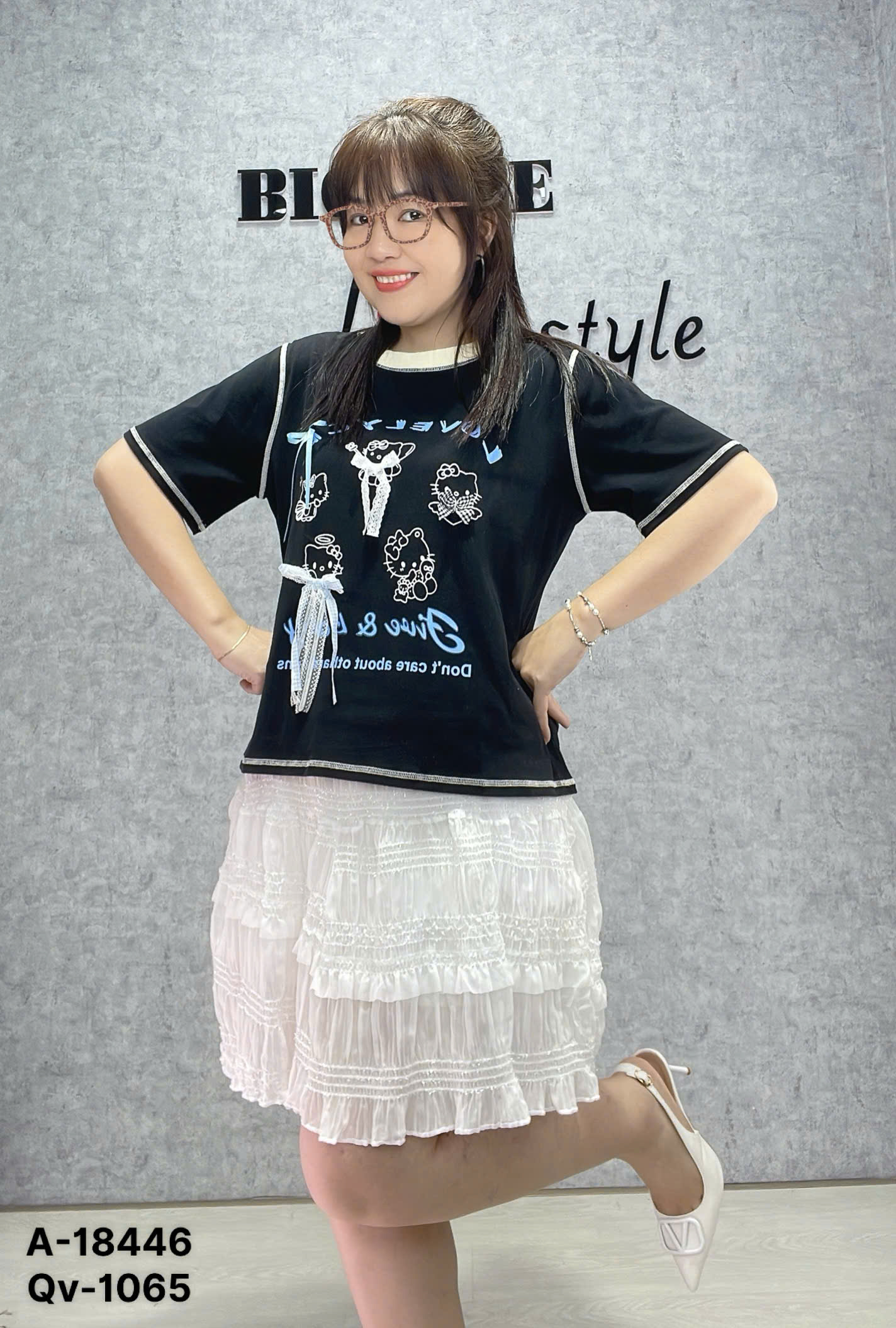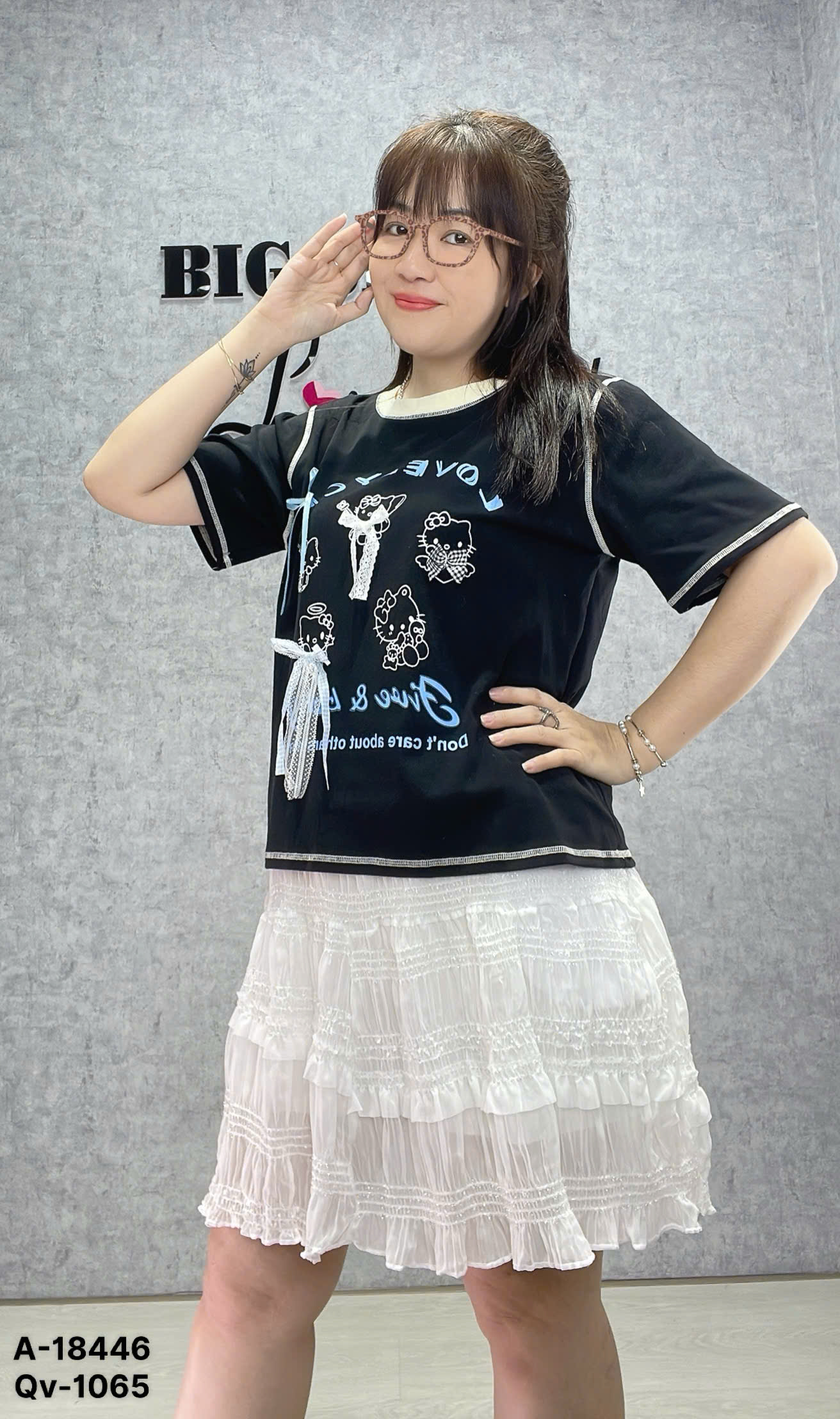✔Áo thun BIGSIZE Quảng Châu kity LOVE- ĐEN- 18446