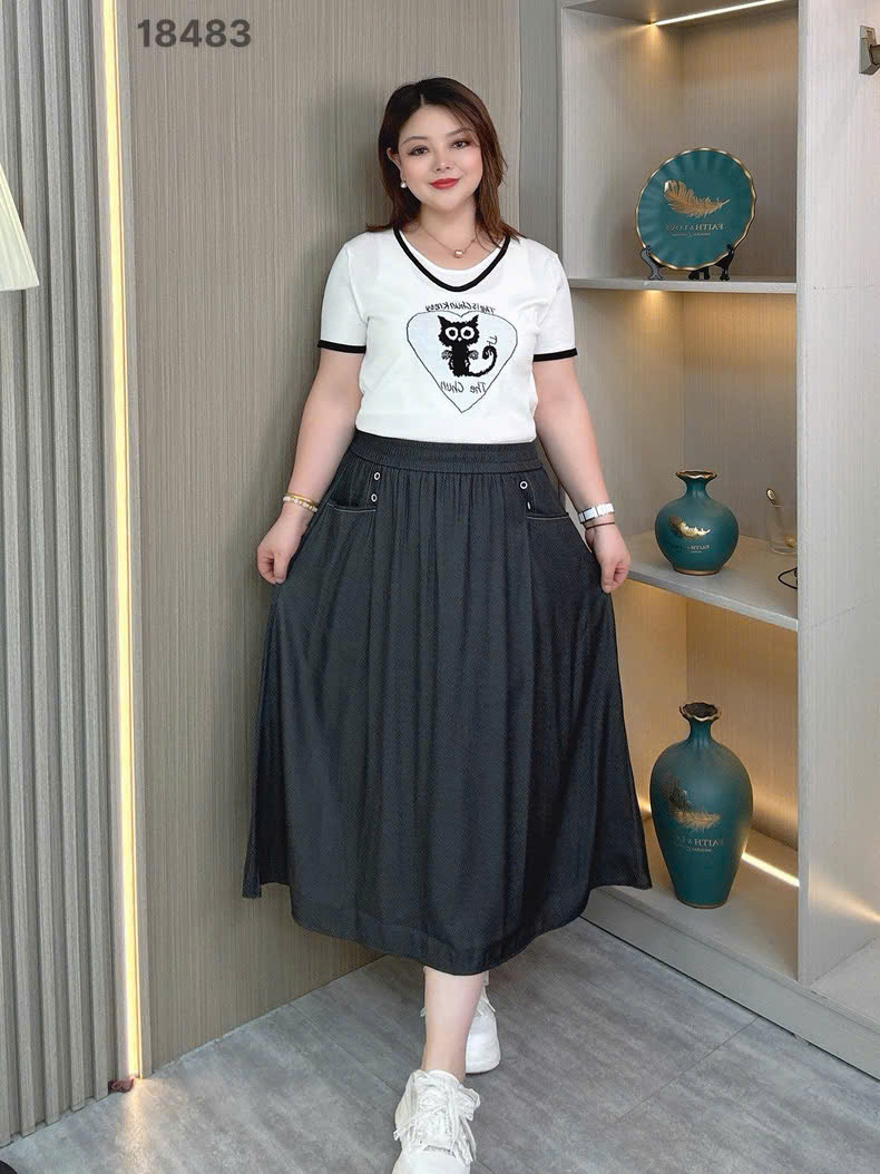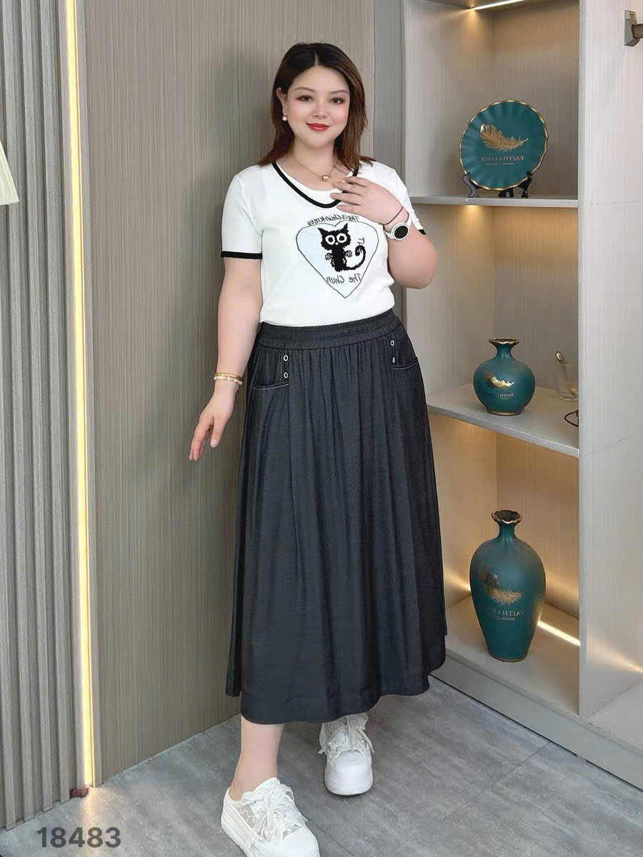 ✔ Váy dài BIGSIZE QC lưng thun chất vải giả Jean mềm đẹp- 18483