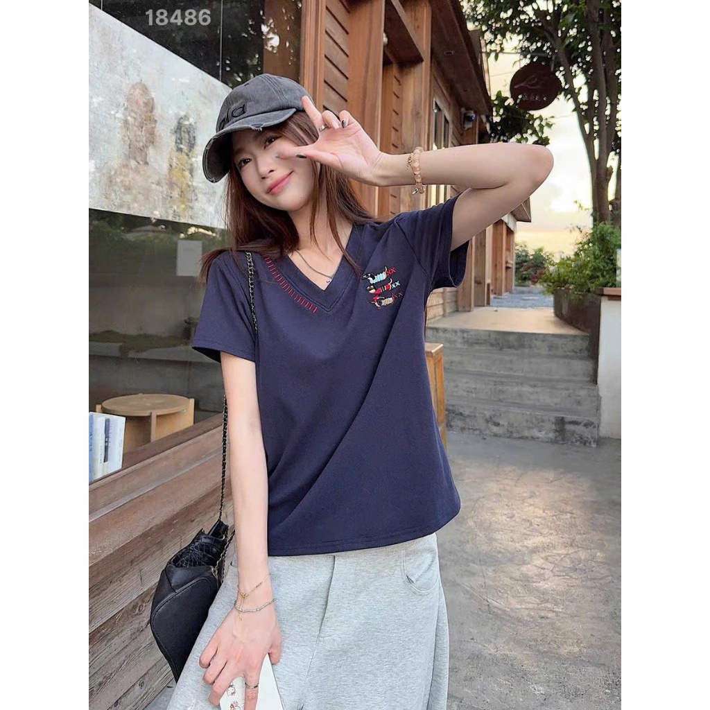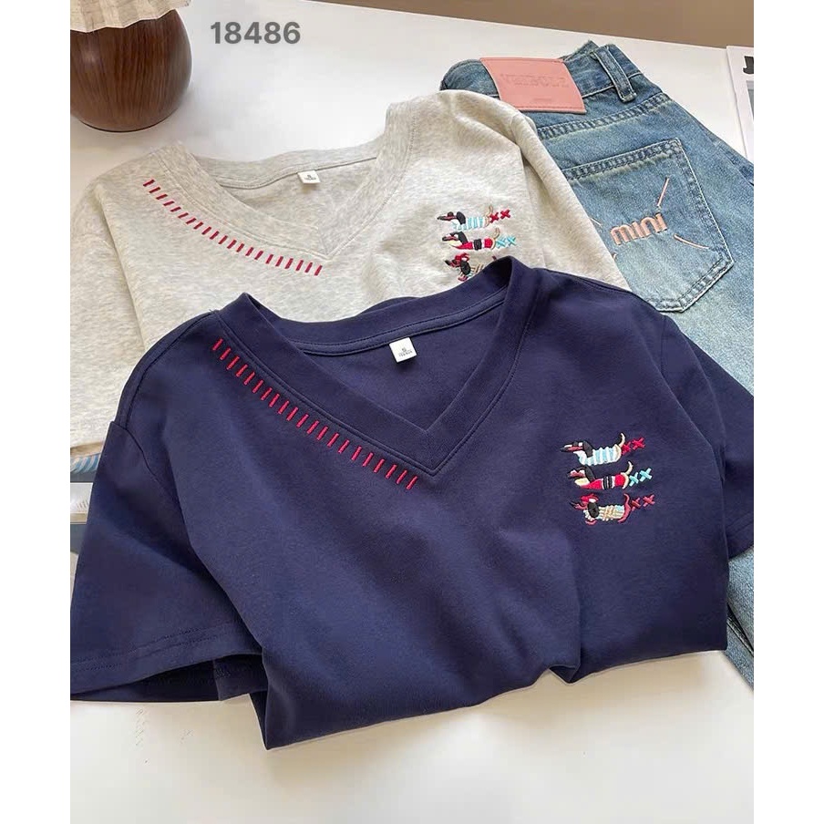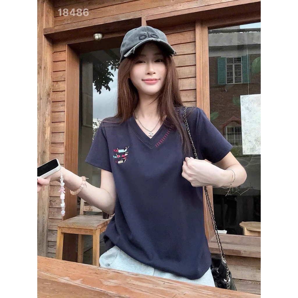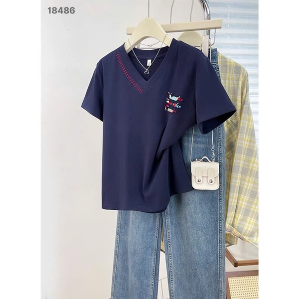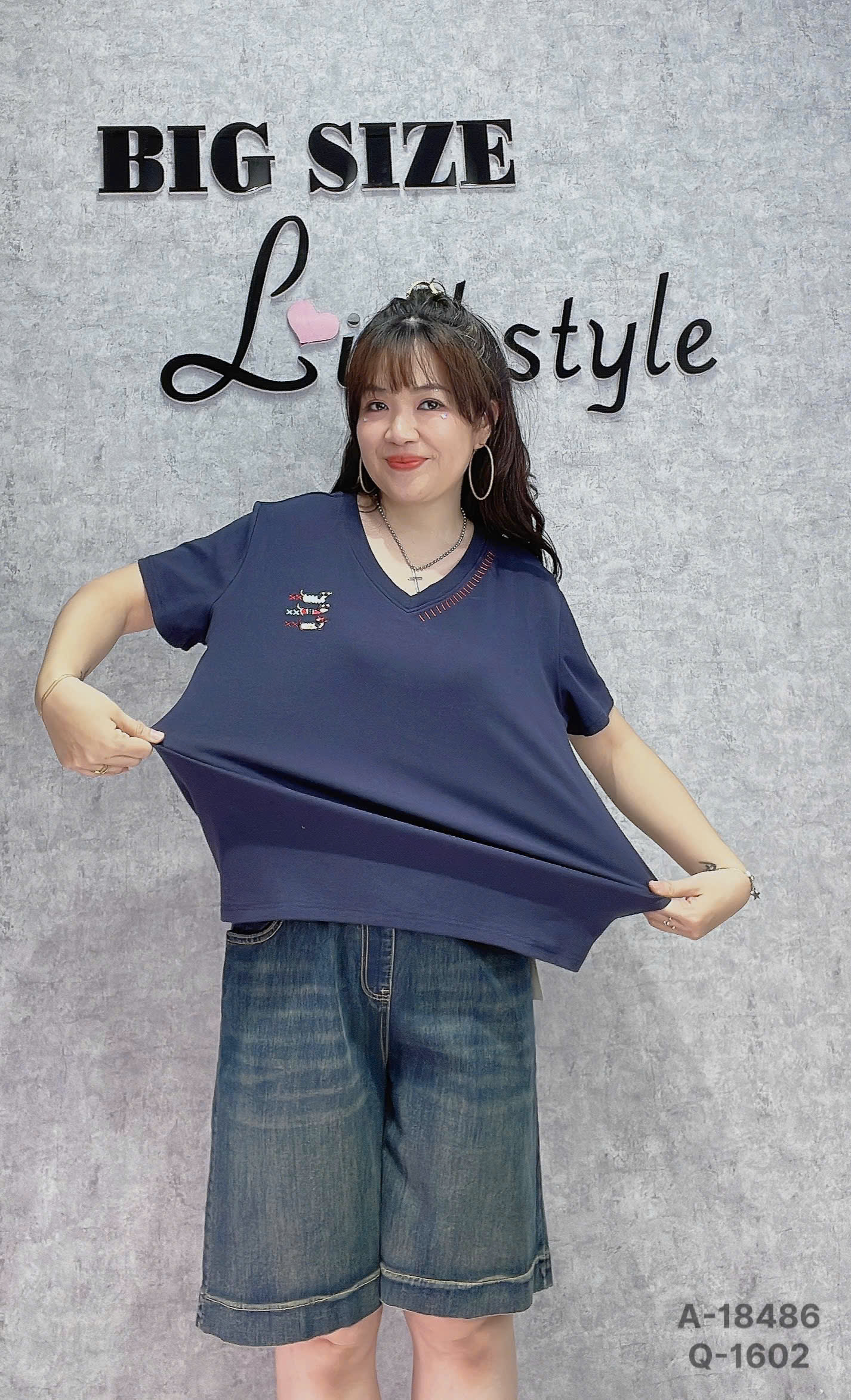 ✔ Áo thun cổ tim BIGSIZE QCCC chất đẹp cotton mịn co giãn nhiều thêu 3 Cho- 18486