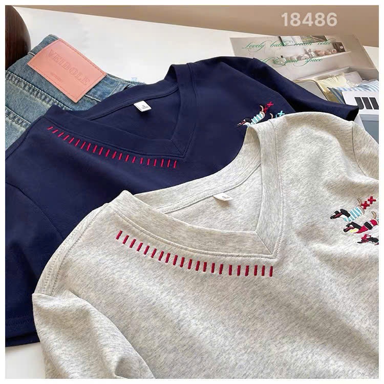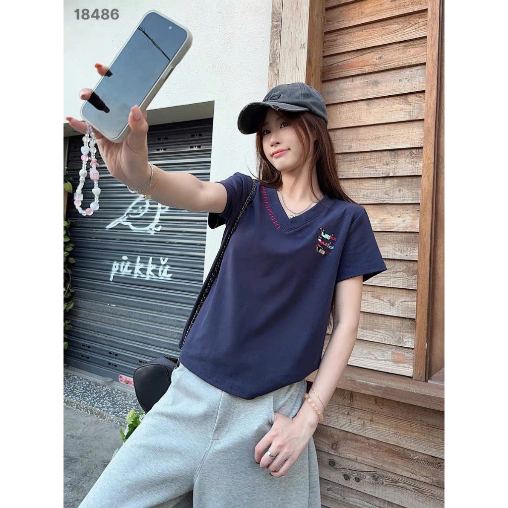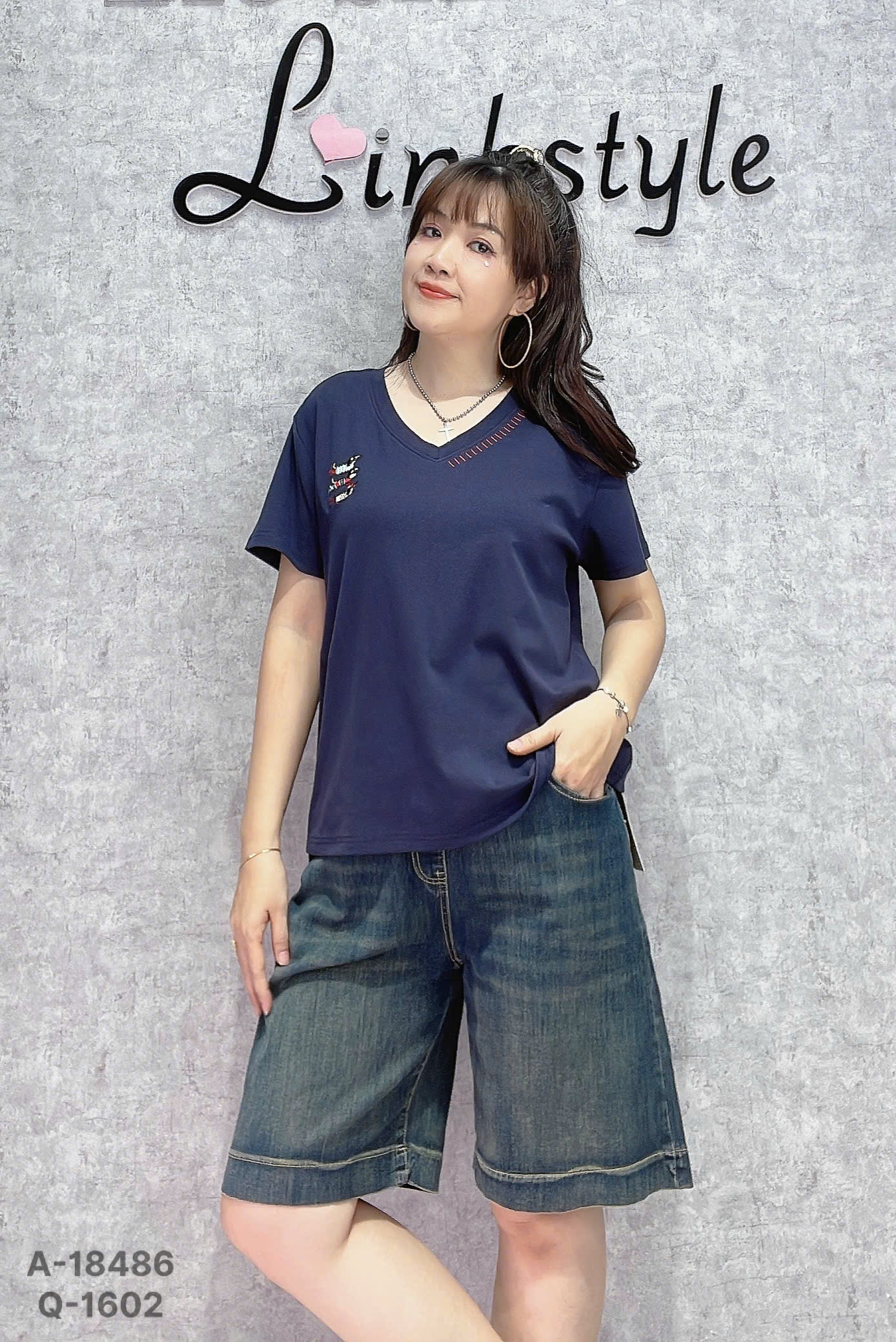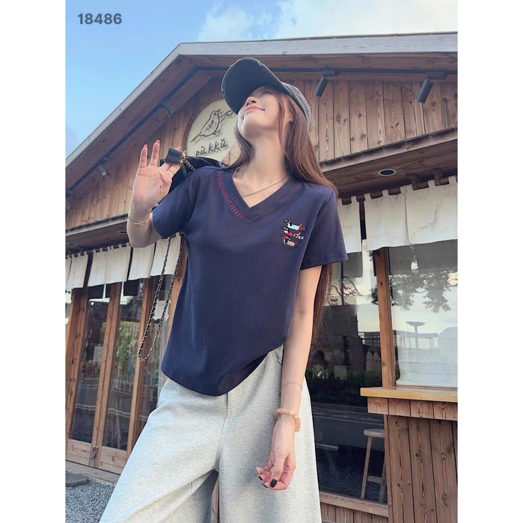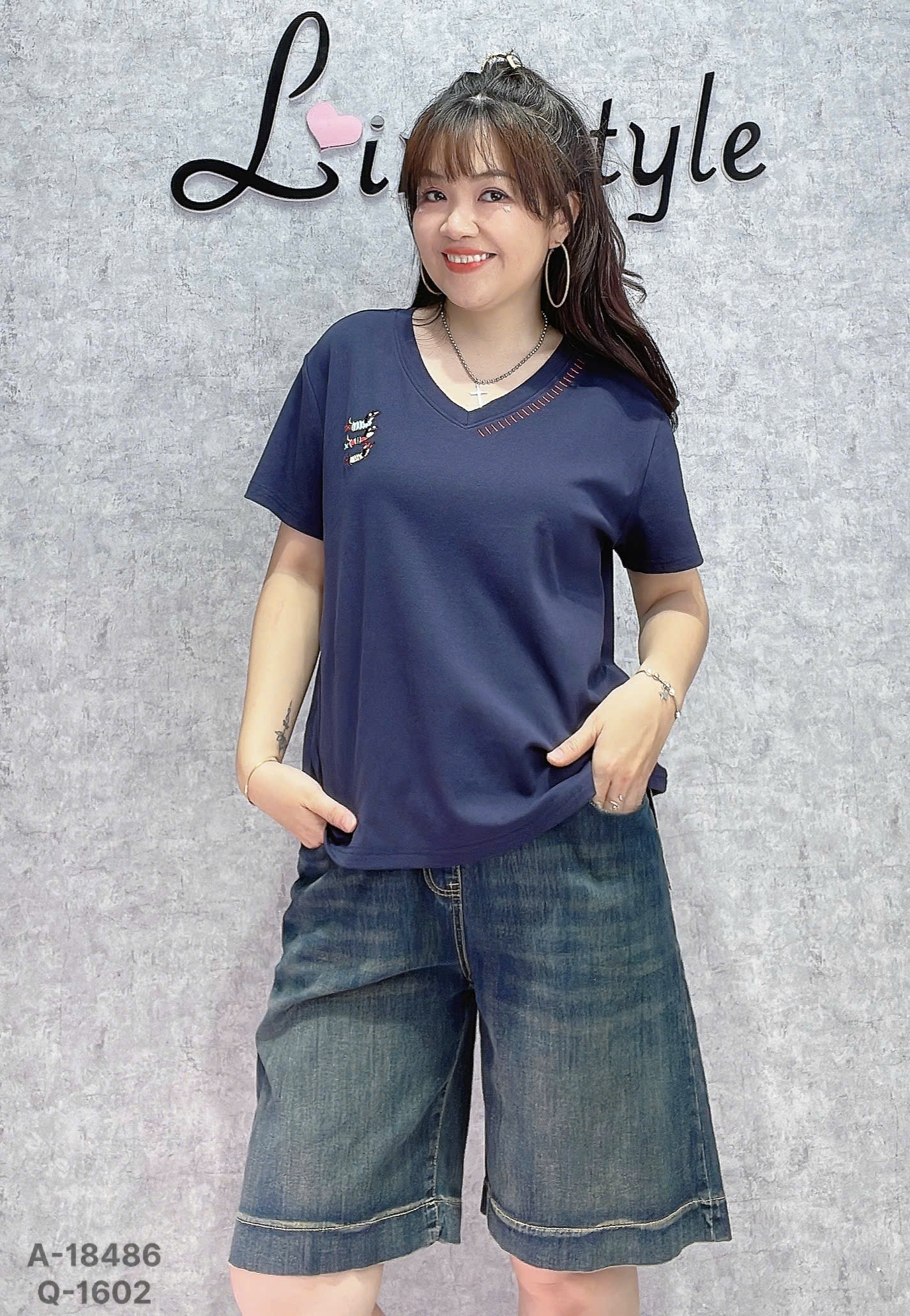 ✔ Áo thun cổ tim BIGSIZE QCCC chất đẹp cotton mịn co giãn nhiều thêu 3 Cho- 18486