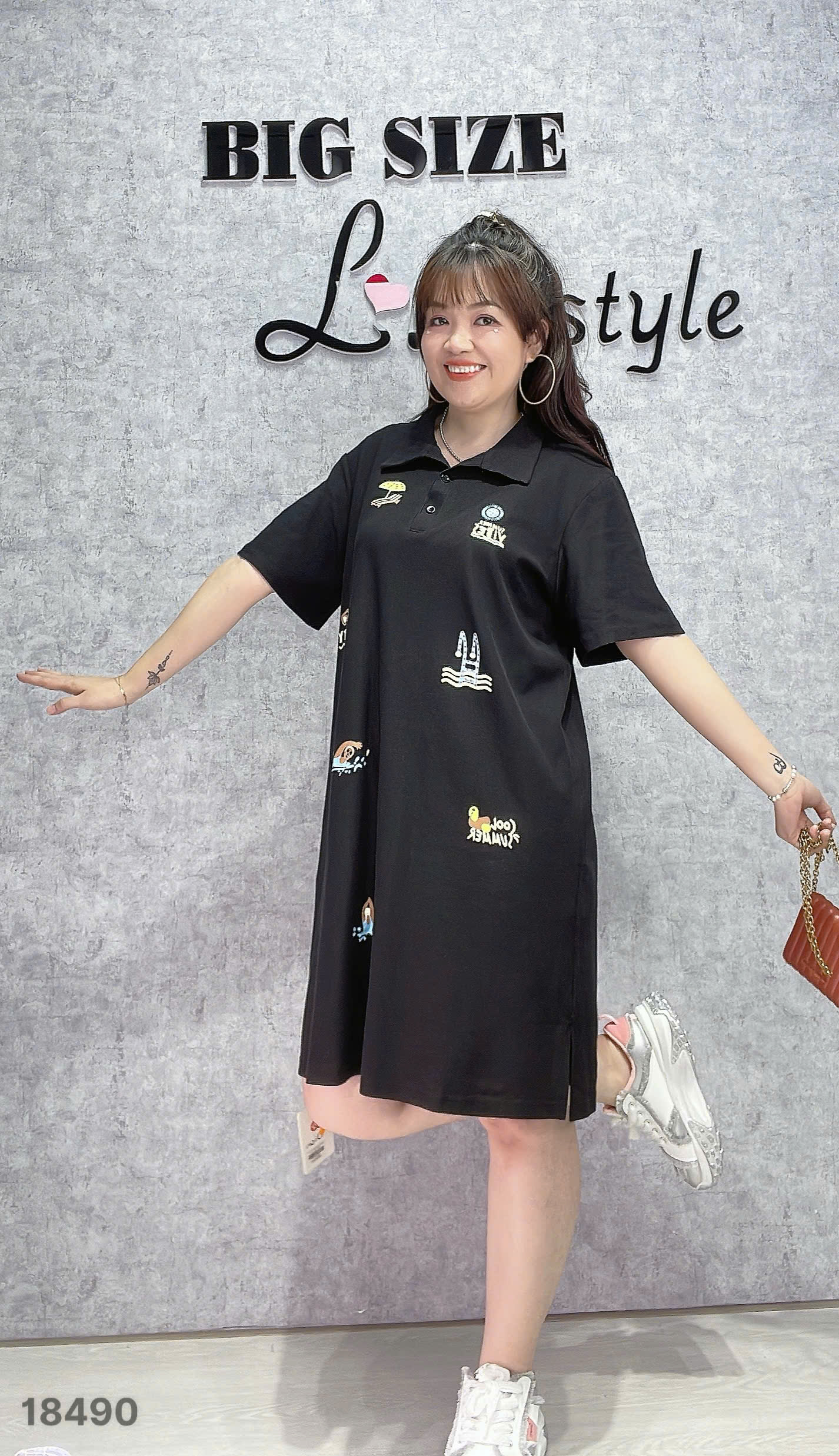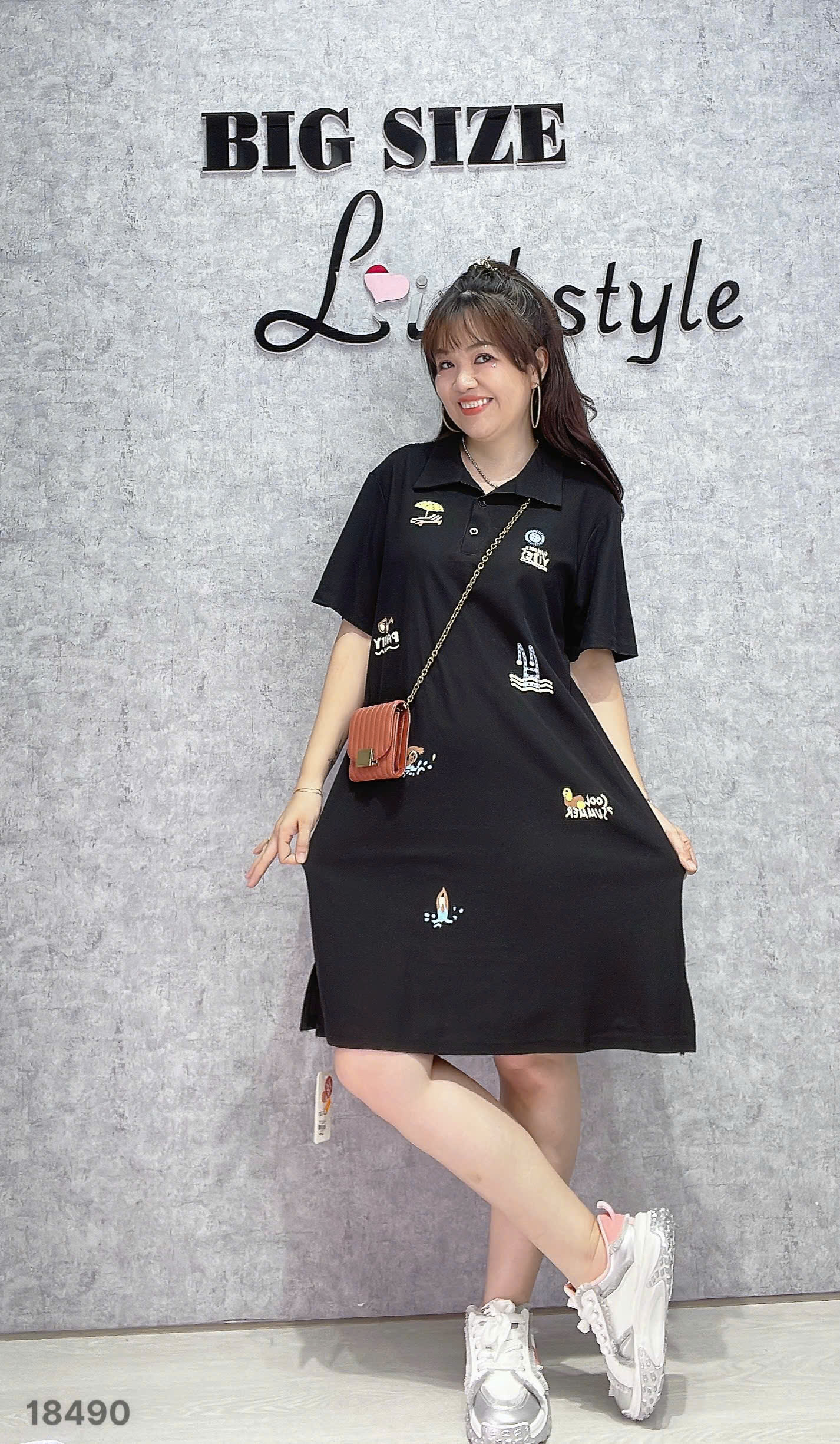 ✔ Đầm Polo che bụng BIGSIZE QC chất đẹp thun co giãn hoạ tiết Logo dáng A- 18490