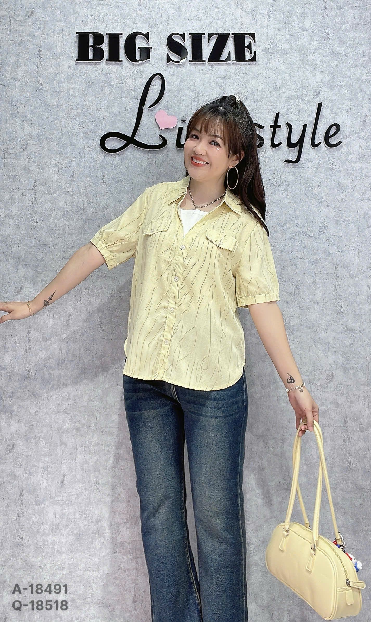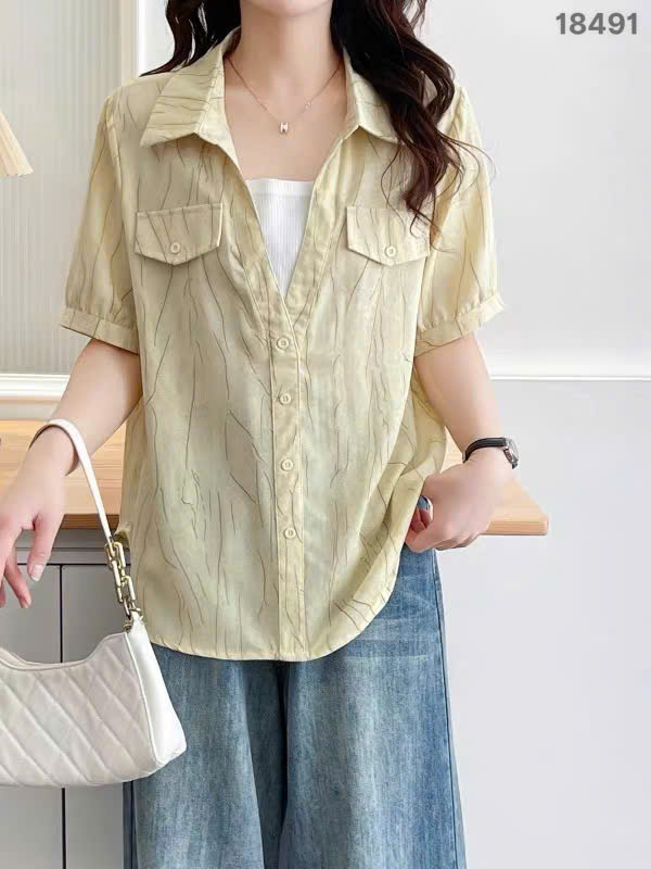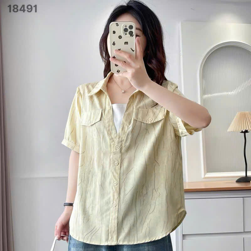 ✔ Sơmi che bụng BIGSIZE QC cổ V phối màu phong cách Hàn Quốc Vải Lụa mặc mát- 18491