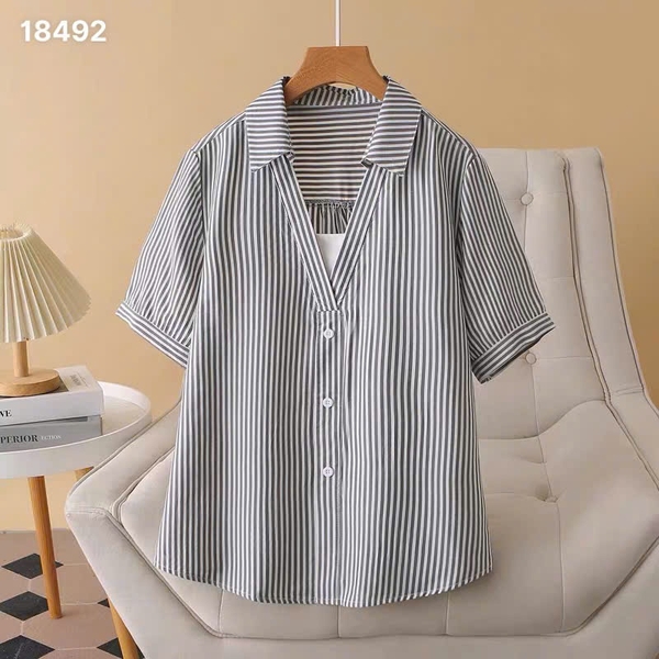 ✔ Sơmi Sọc BIGSIZE QC cổ V phối màu che bụng phong cách Hàn Quốc chất mặc mát- 18492