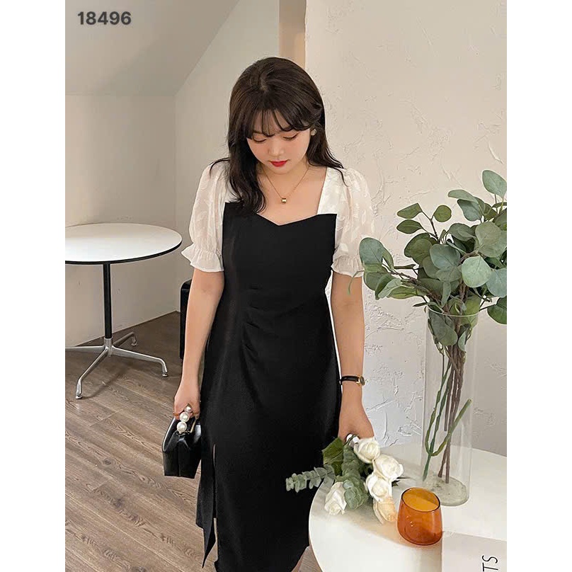 ✔ Đầm đi tiệc BIGSIZE QC cổ vuông nhúng eo màu trơn sang trọng thanh lịch - 18496