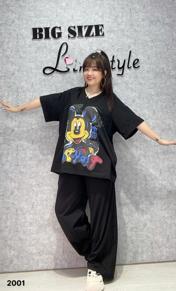 ✔Set Dài BIGSIZE Quảng Châu Thun co giãn Cổ tim Micky 00351 - 2001