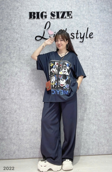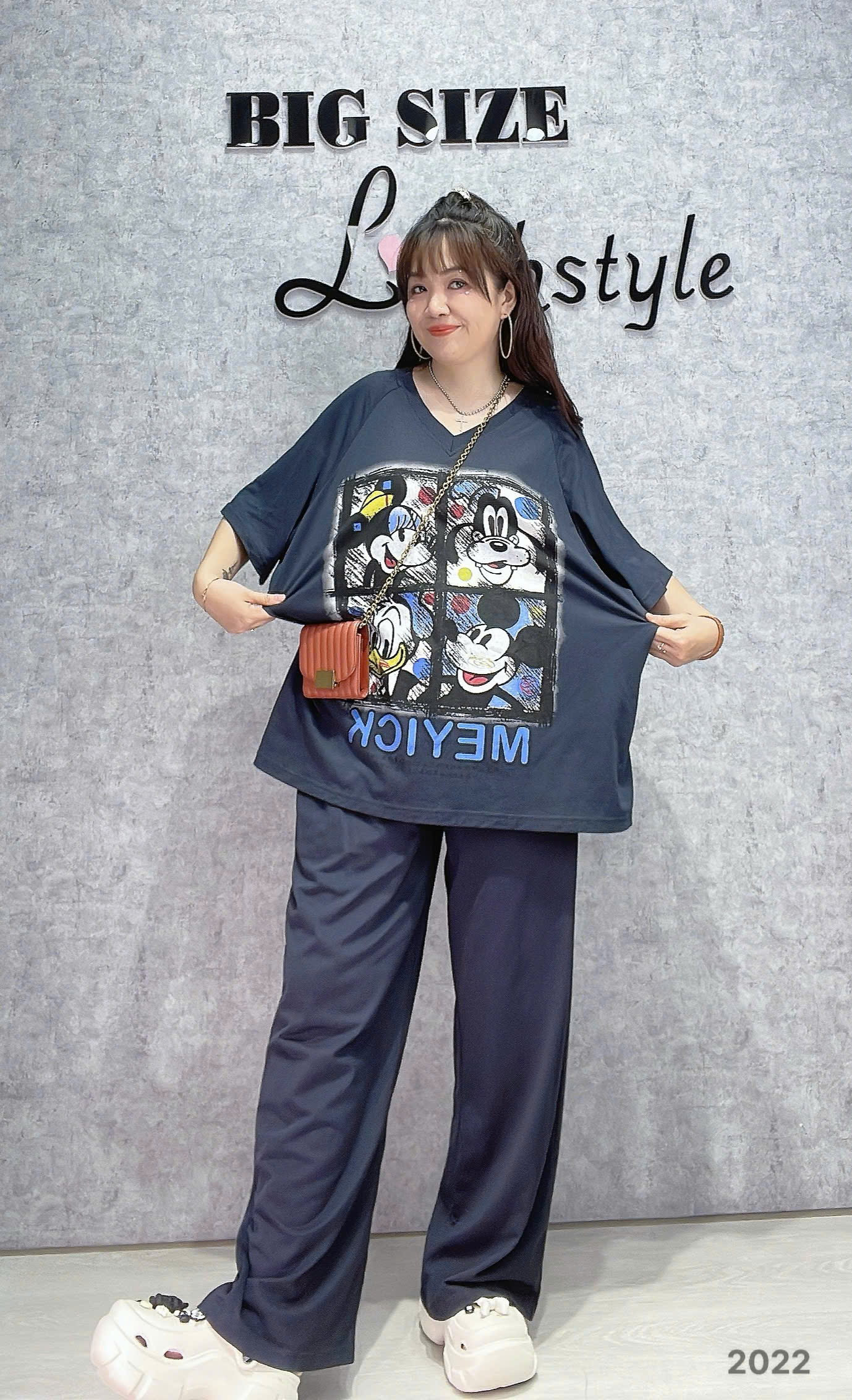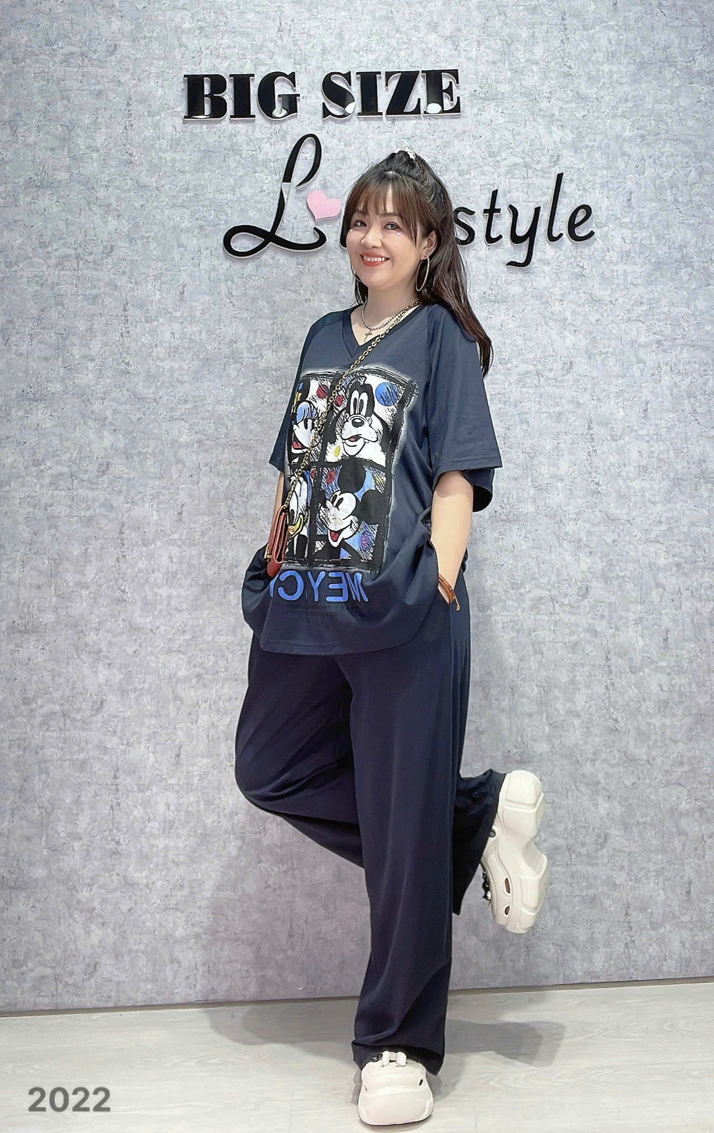 ✔ Set Dài BIGSIZE Quảng Châu Thun co giãn cổ tim 4 ô Micky 00351- 2022