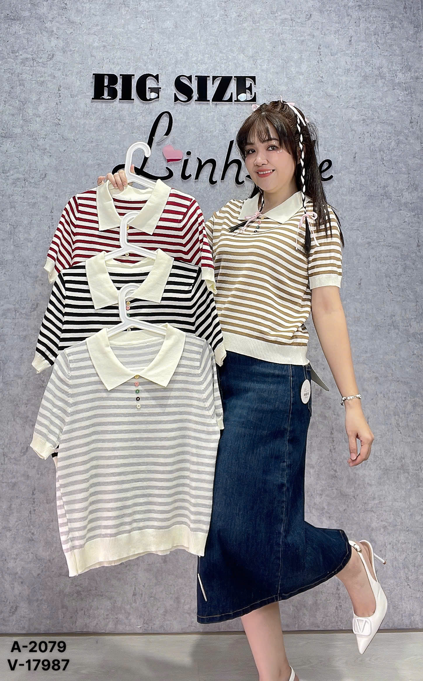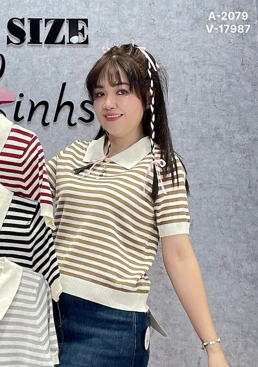 ✔ Áo polo BIGSIZE QCCC len sọc -2079