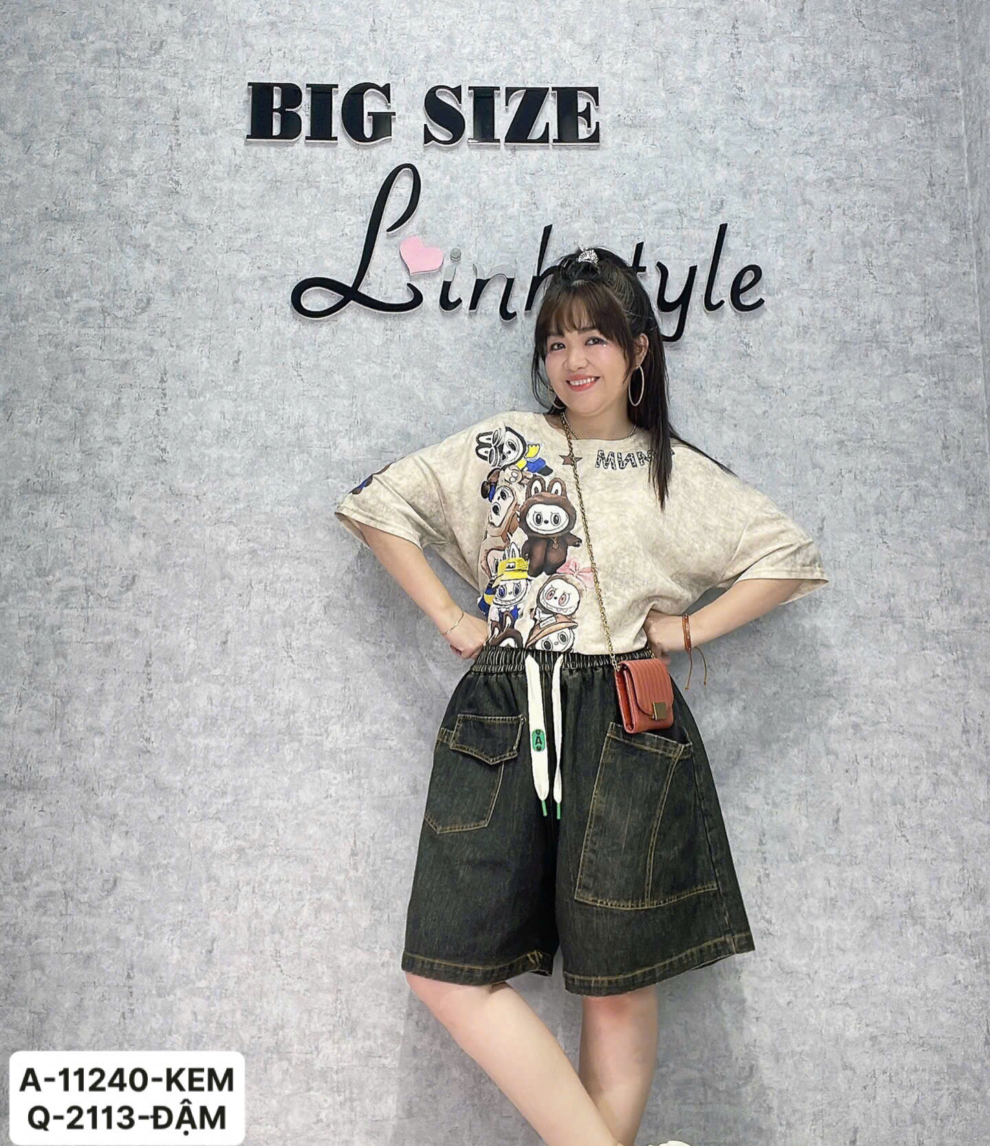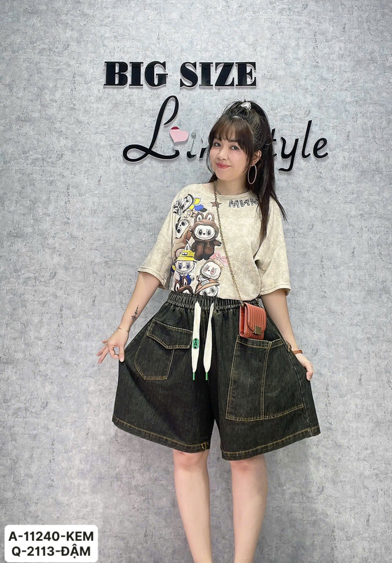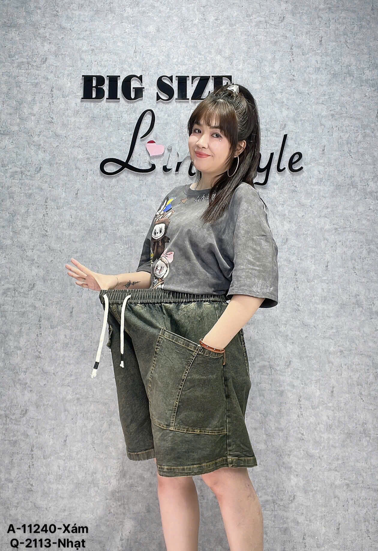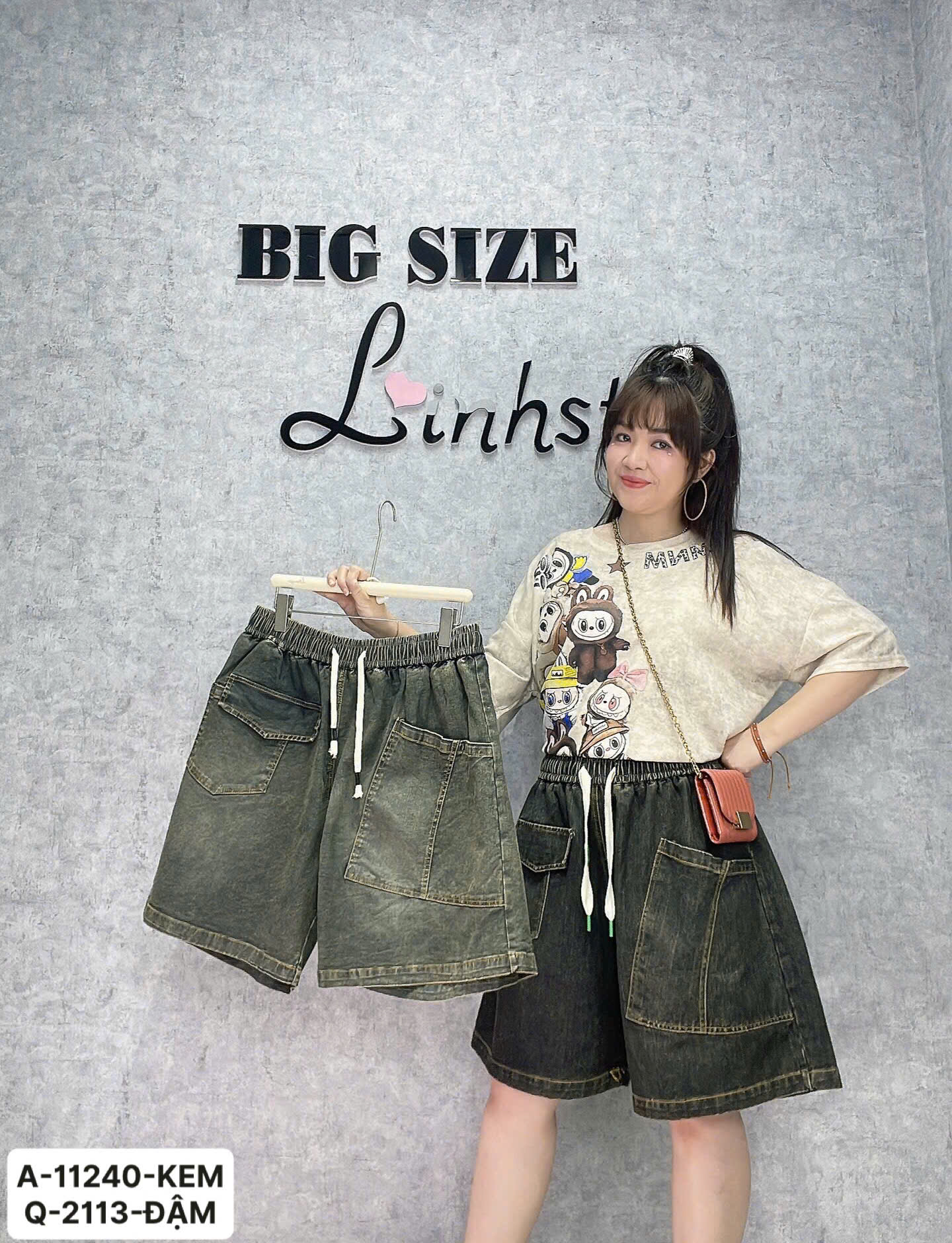 ✔ Quần sọt Jean BIGSIZE QCCC dáng lửng màu trơn Túi xéo 00280 - 2113
