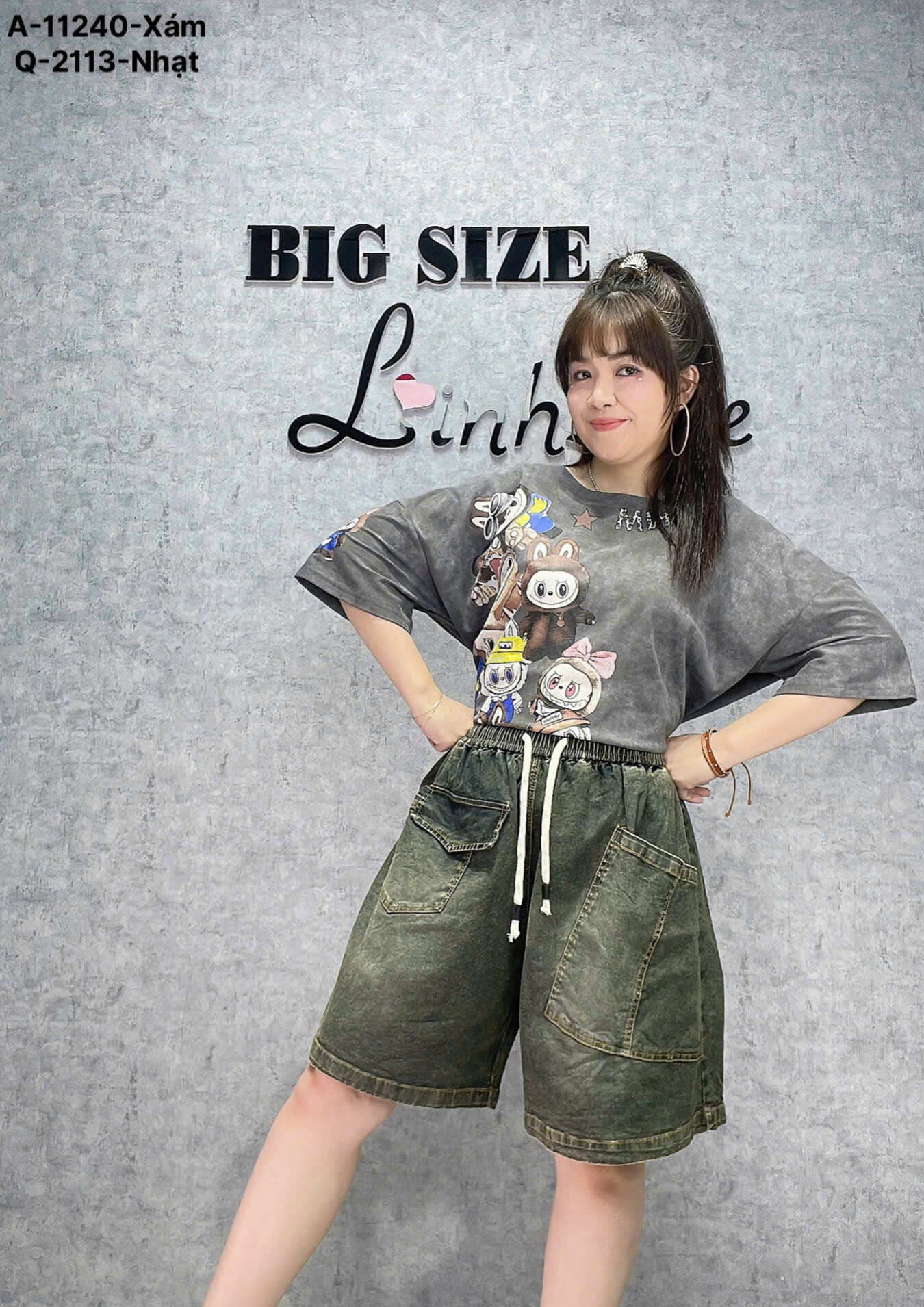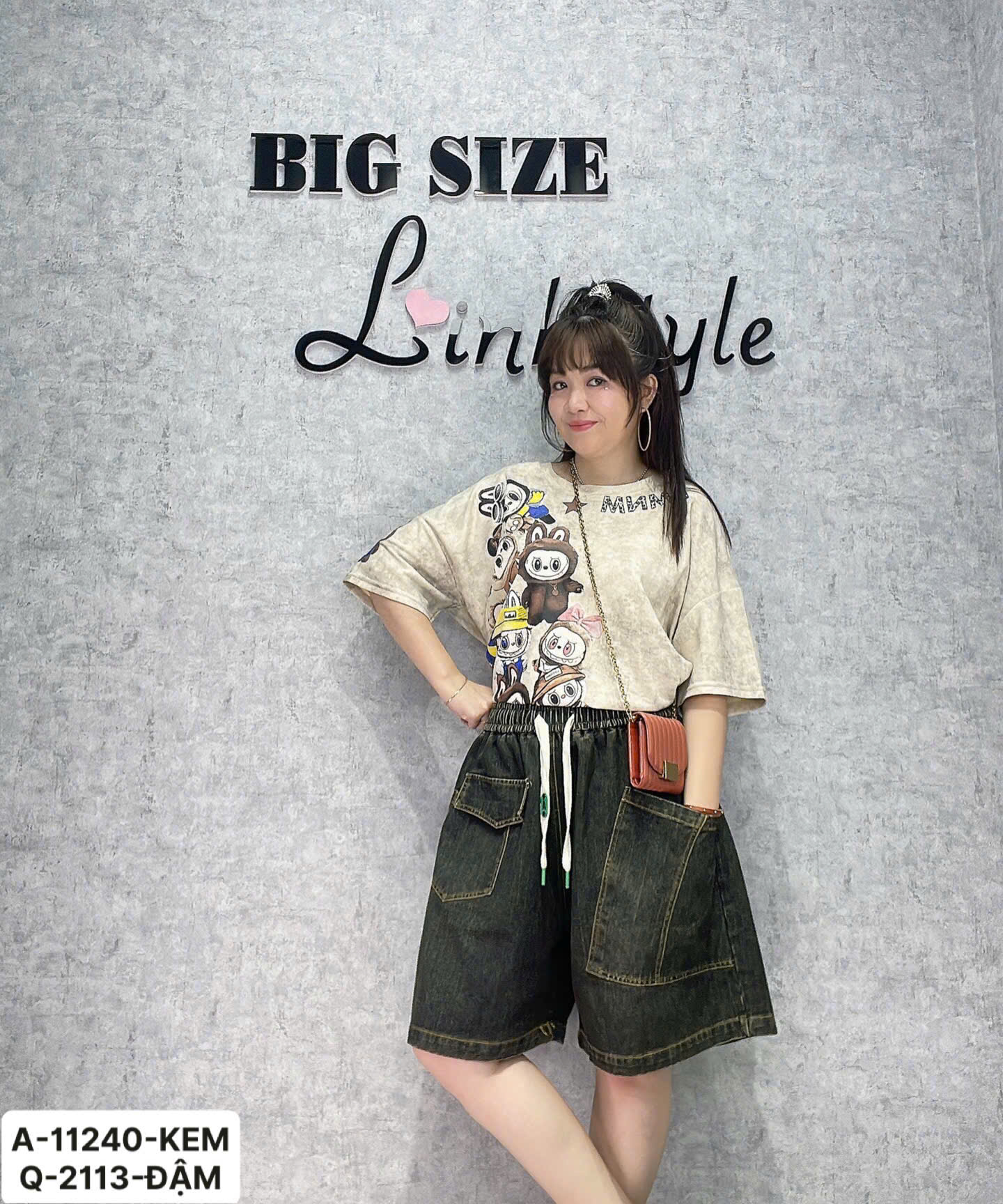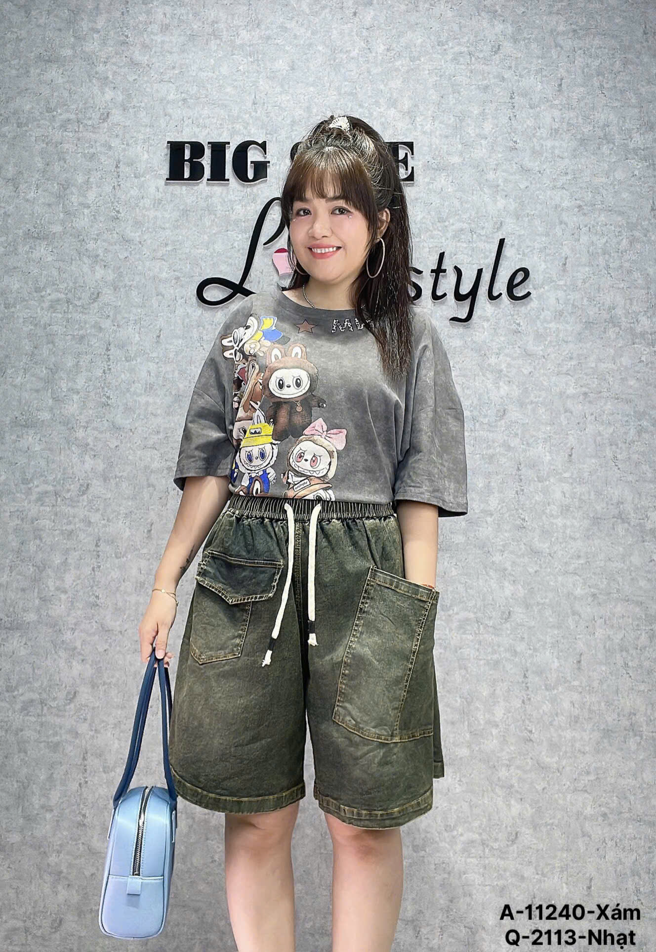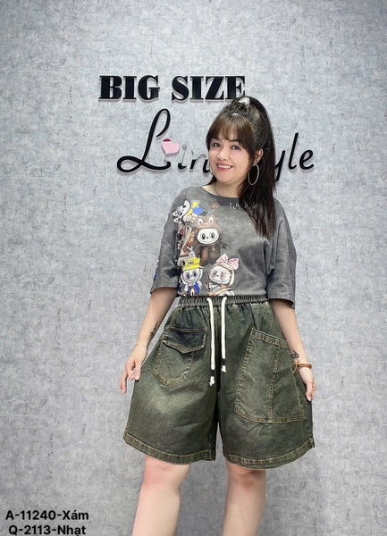 ✔ Quần sọt Jean BIGSIZE QCCC dáng lửng màu trơn Túi xéo 00280 - 2113