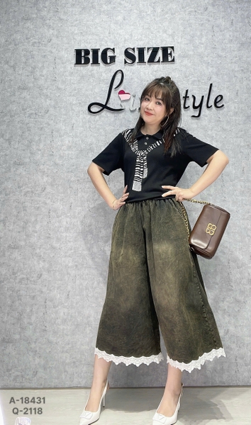 ✔Quần Jean lửng BIGSIZE QC Jean co giãn lưng thun lai Ren SIZE ĐẠI- 00315 -2118