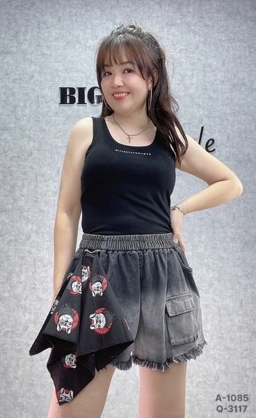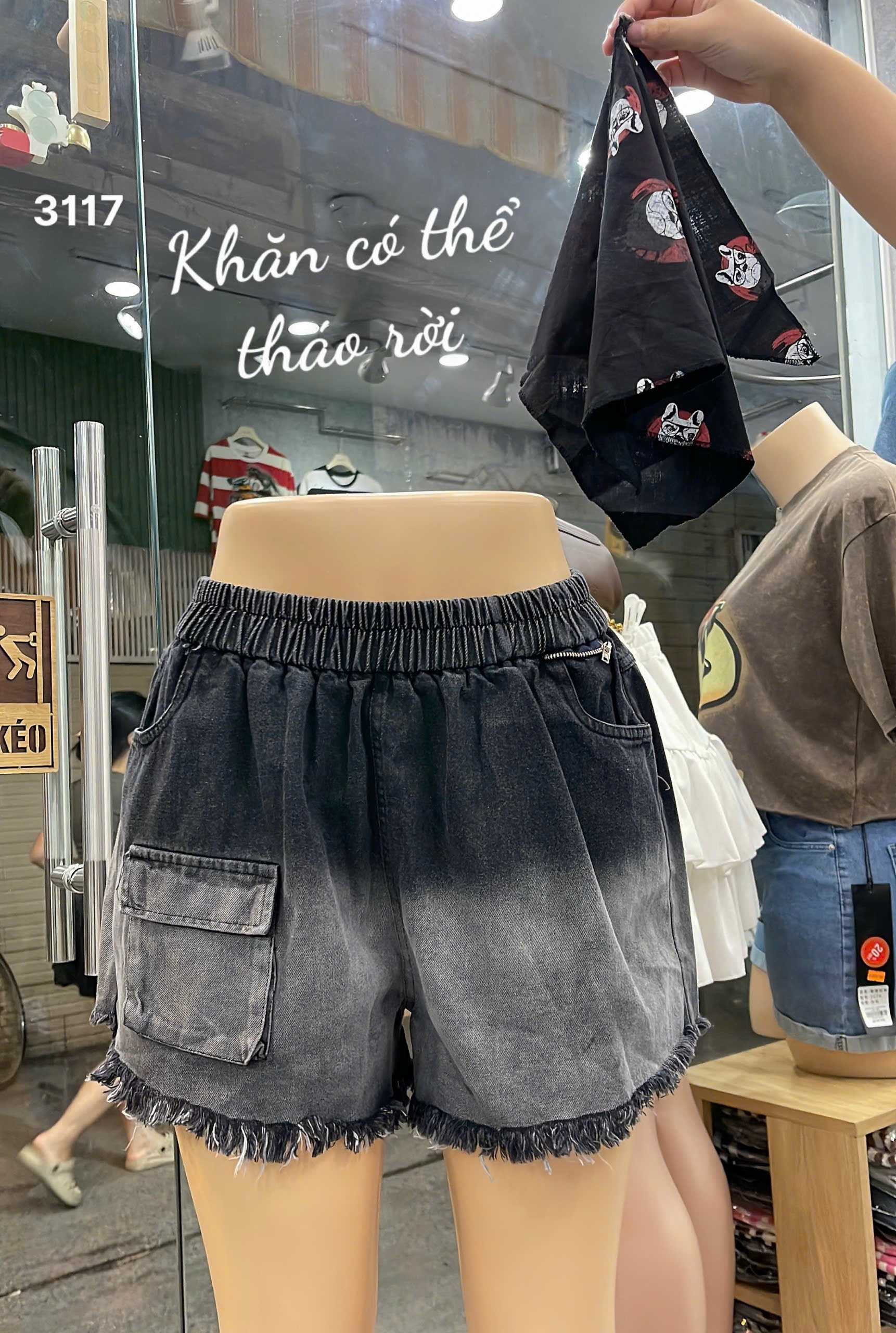 ✔ Quần Sọt jean Lưng Thun BIGSIZE QCCC trẻ trung,năng động Khăn- 3117