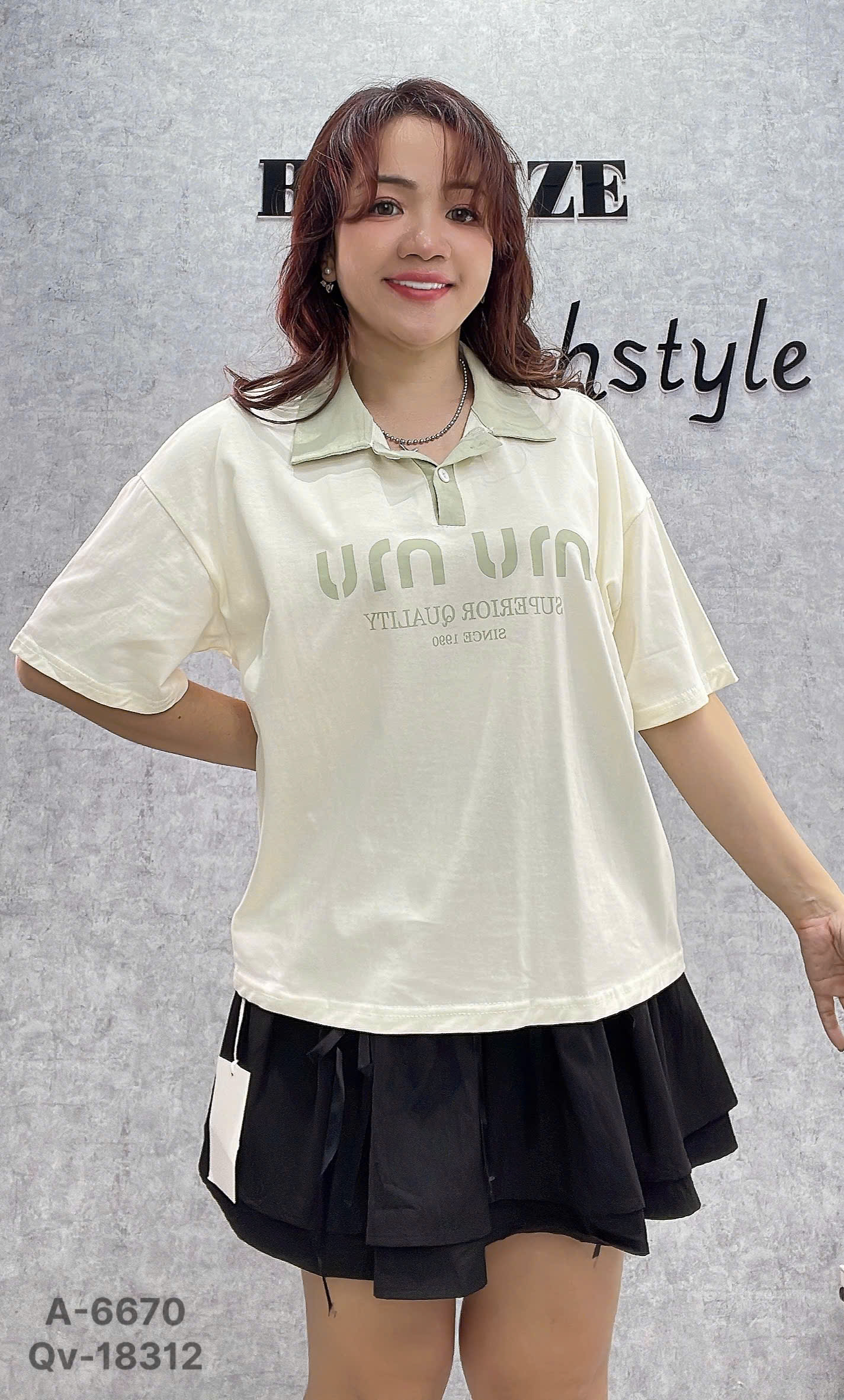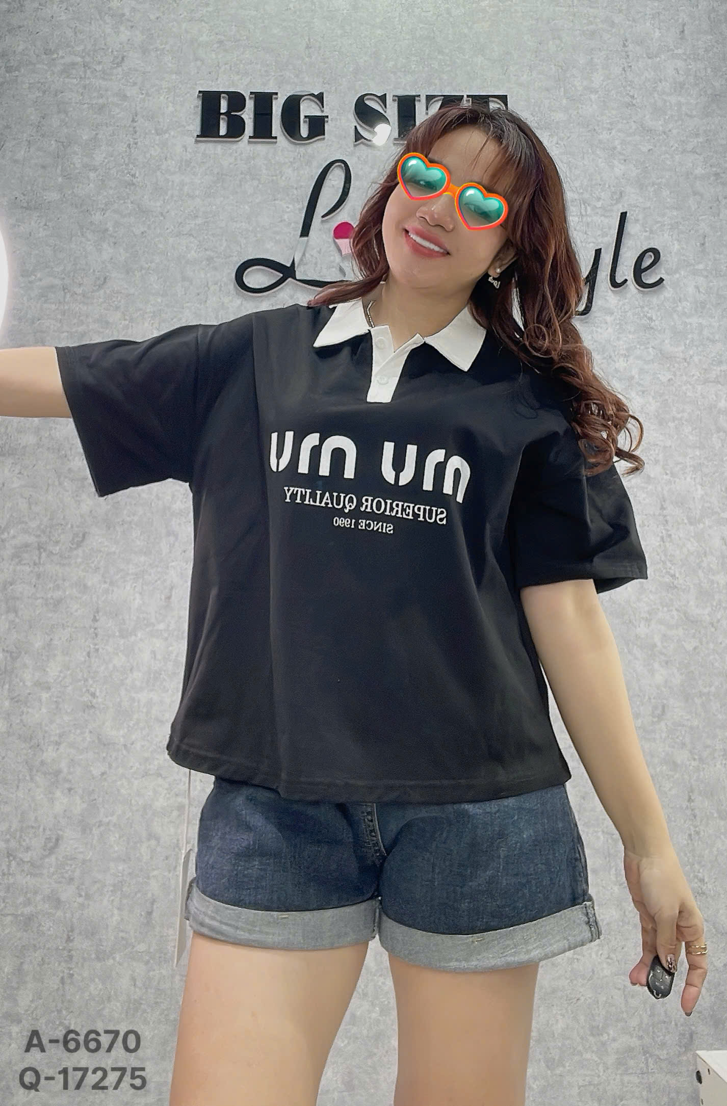 ✔ Áo thun polo BIGSIZE QCCC chữ MIU - 6670