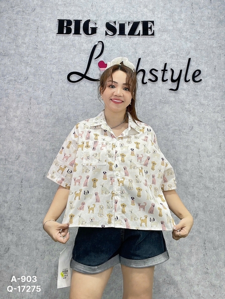 ✔ Áo Sơ Mi Bigsize ngắn lửng hình Cho- dễ thương- 903