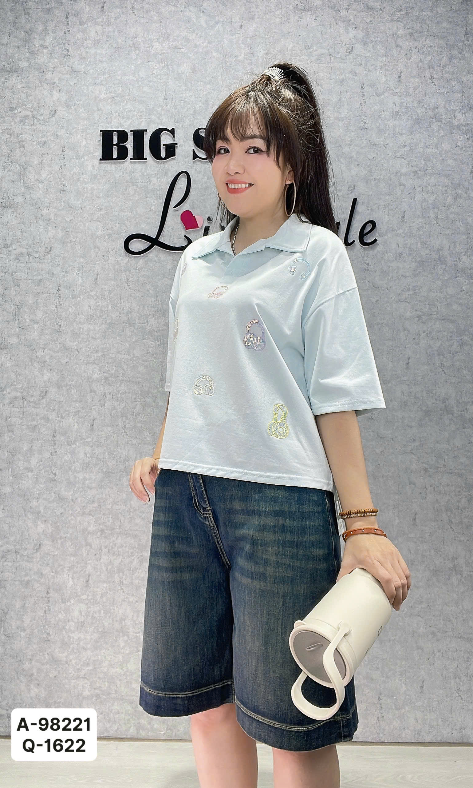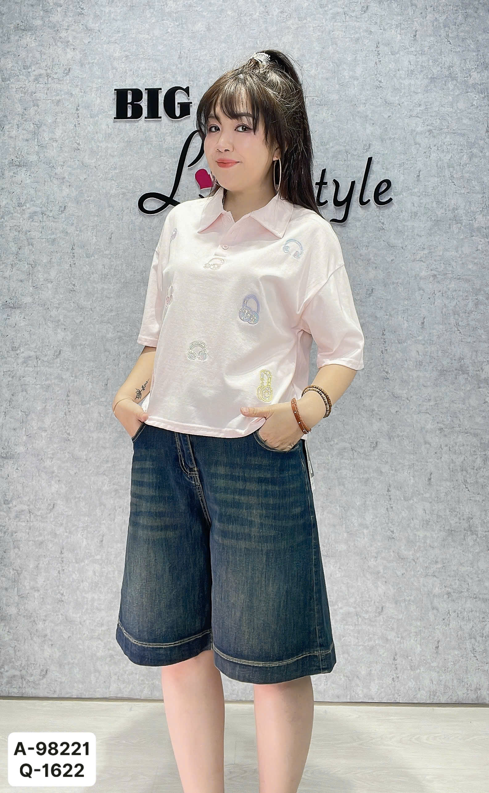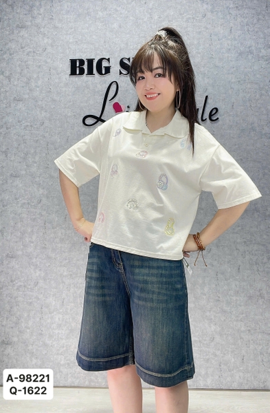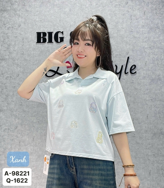 ✔ Áo Polo BIGSIZE QCCC dáng ngắn CropTop hình tai nghe nhỏ cotton chất đẹp - 98221