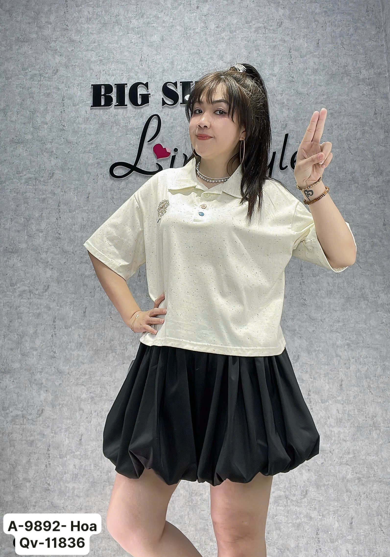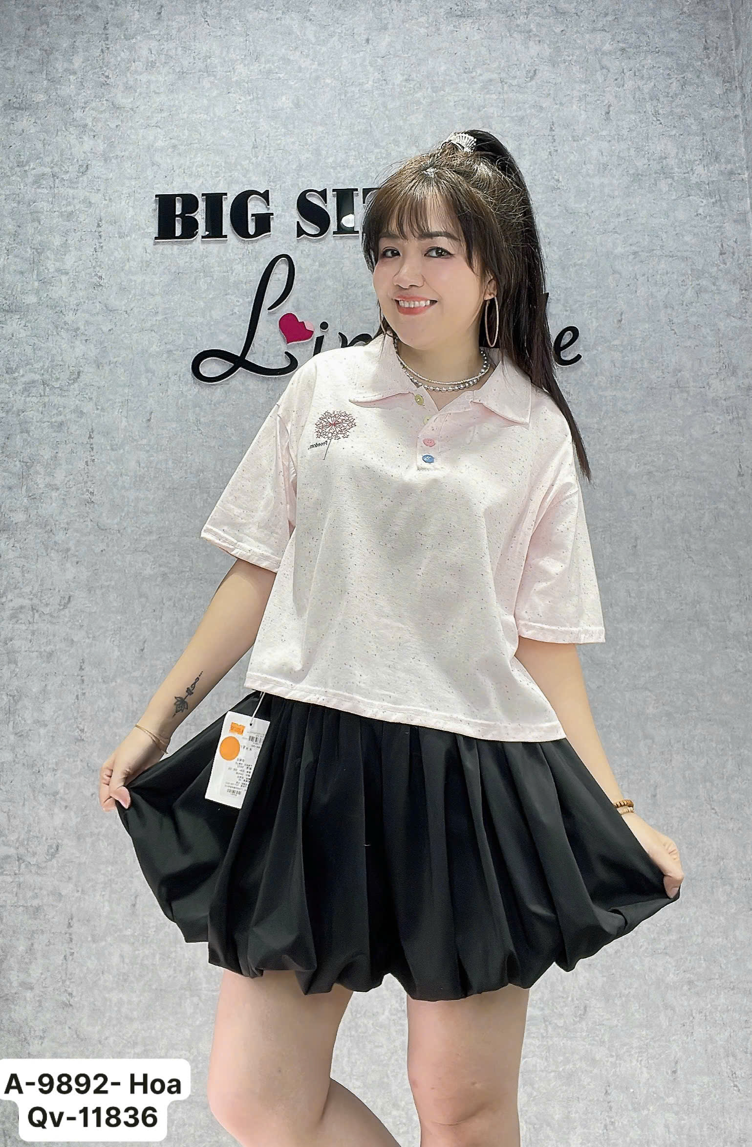 ✔ Áo Polo CropTop BIGSIZE QC dáng lửng ngắn logo Hoa nhỏ cotton đẹp co giãn - 9892