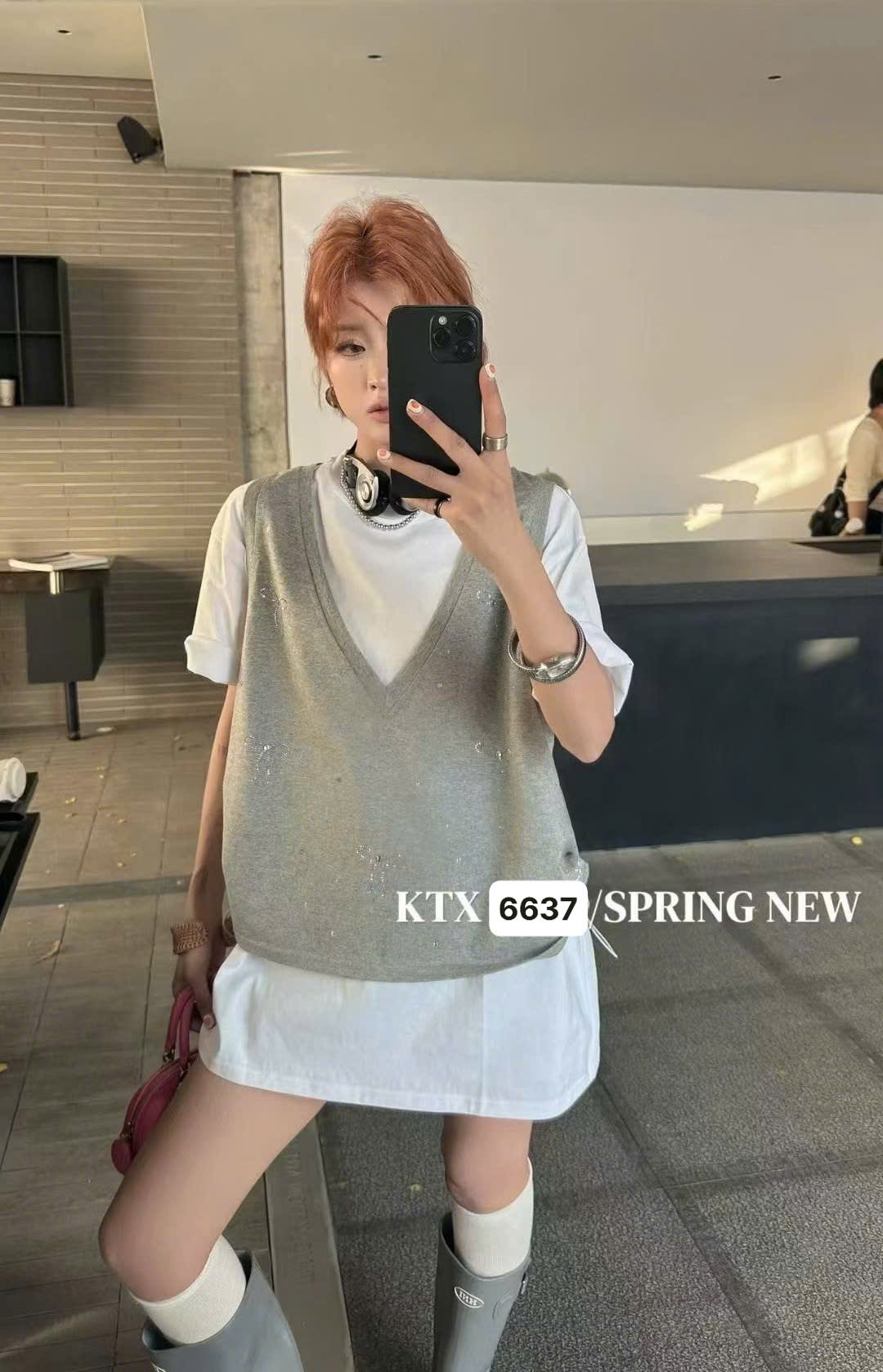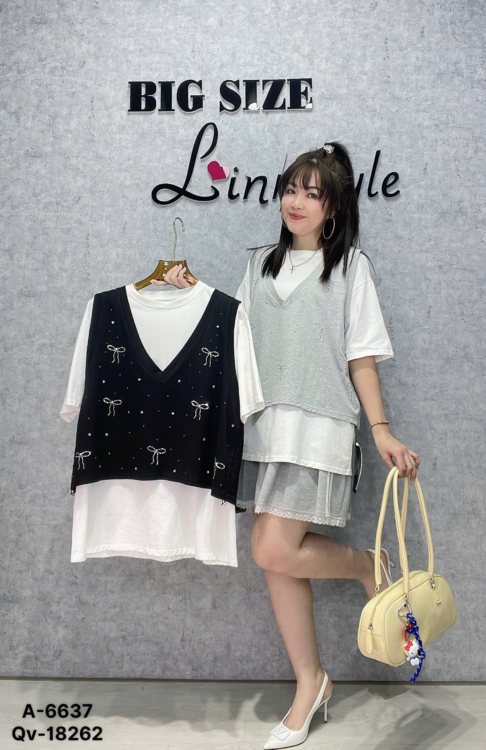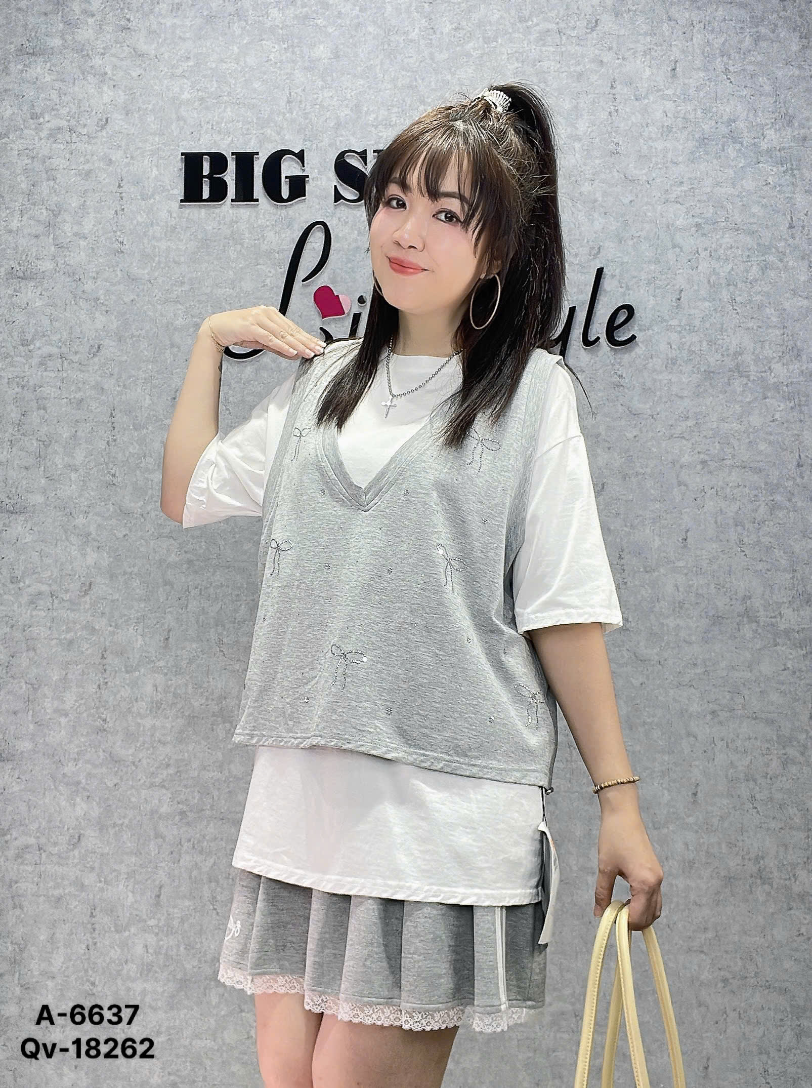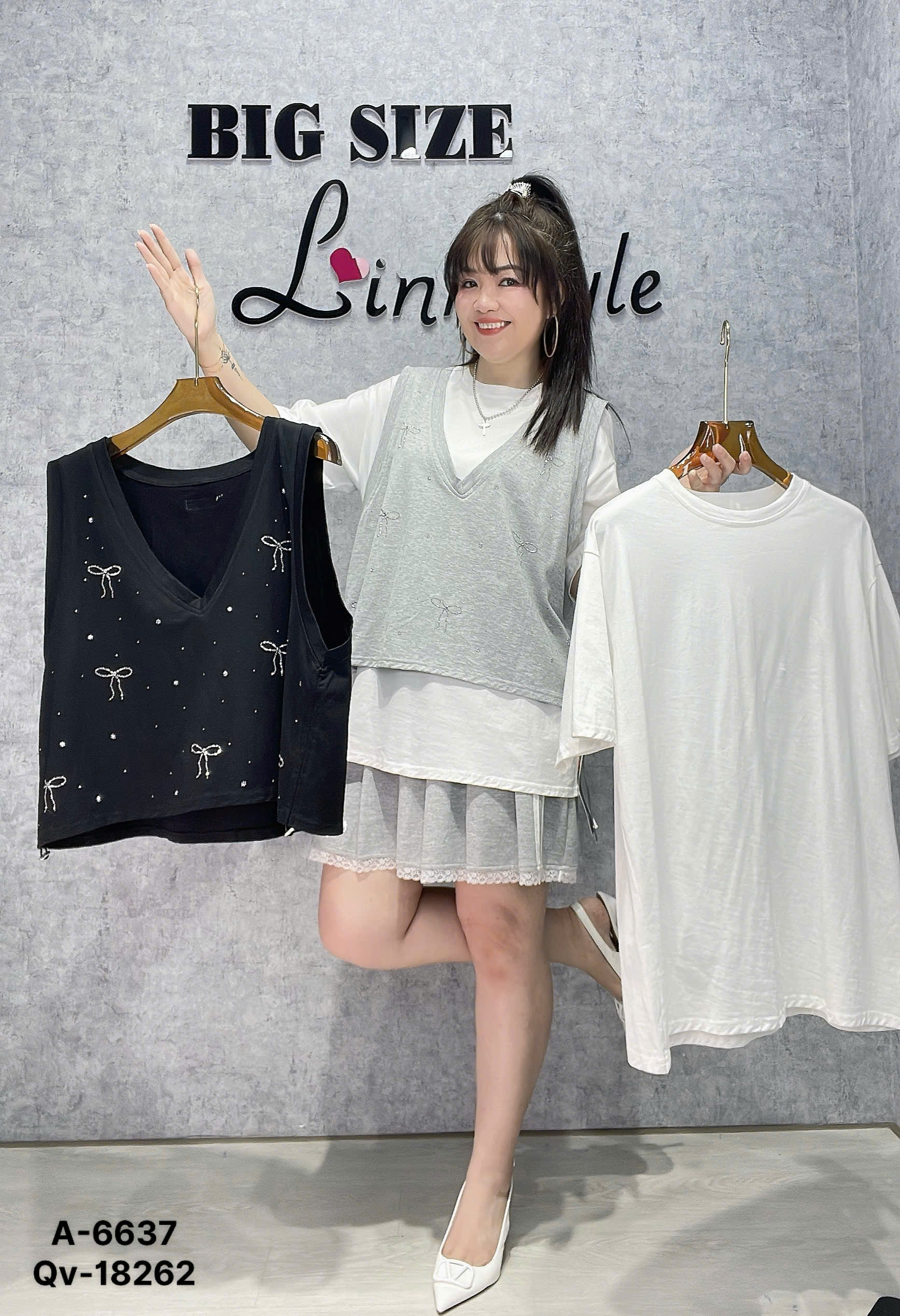 ✔ Áo thun set 2 cái rời BIGSIZE QCCC chất đẹp OVS BC bên ngoài Sát Nách ép Nơ Bling - 6637
