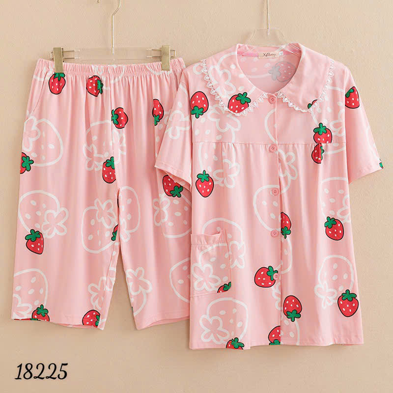 ✔ Bộ lửng BIGSIZE QCCC thun cotton mịn đẹp loại 1 thấm hút mồ hôi tốt, co giãn SL. Cổ sen Dâu- 18225
