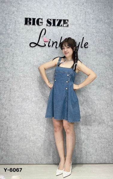 ✔ Đầm Jean 2 dây BIGSIZE QCCC chất jean thun mềm co giãn nhiều 6 nút - 6067