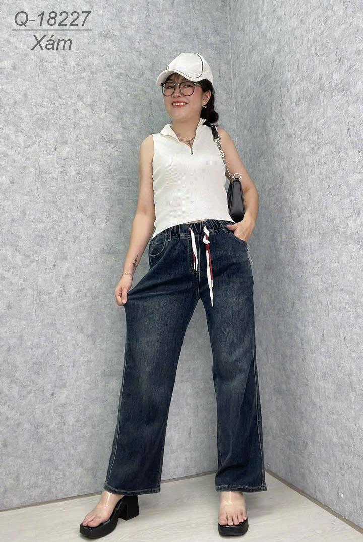 ✔️ Quần Jean Culottes ống Suông BIGSIZE Quảng Châu lưng cao LT phối dây đôi chất jean co giãn - 18227
