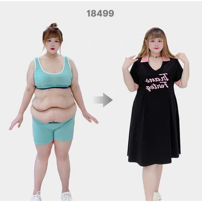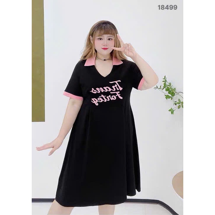 ✔ Đầm cổ Polo BIGSIZE QC chất đẹp cổ V mặc qua gối chất thun cotton co giãn - 18499