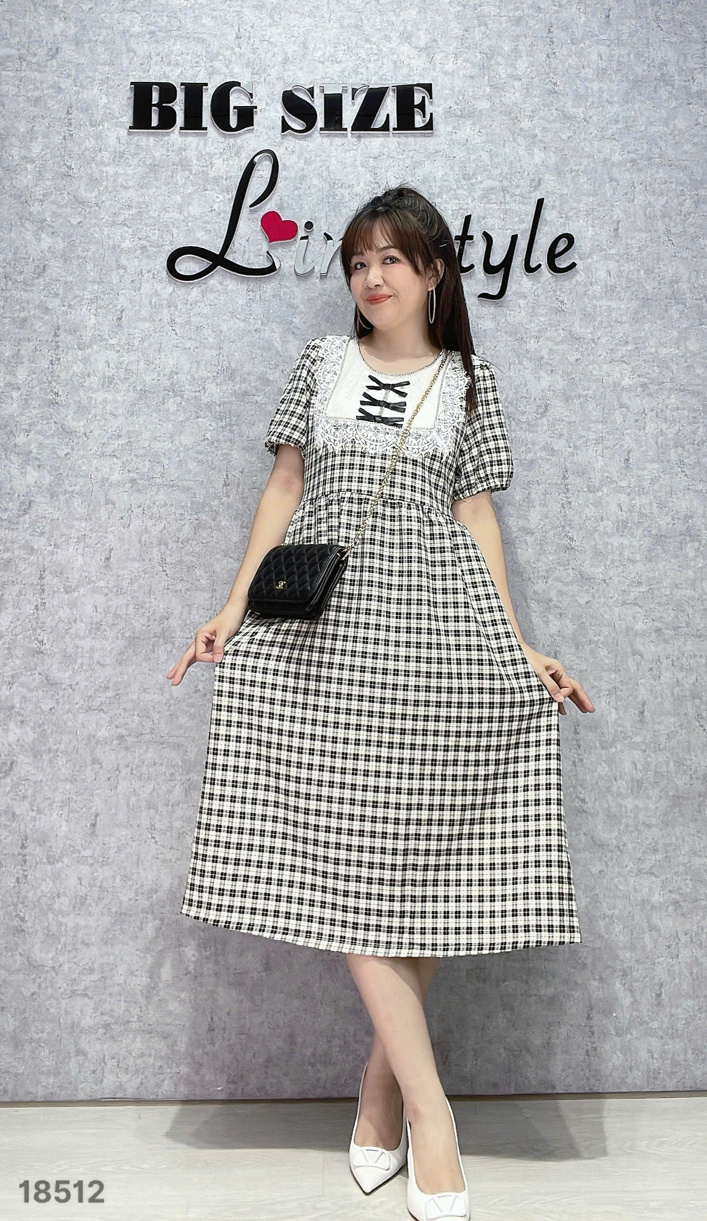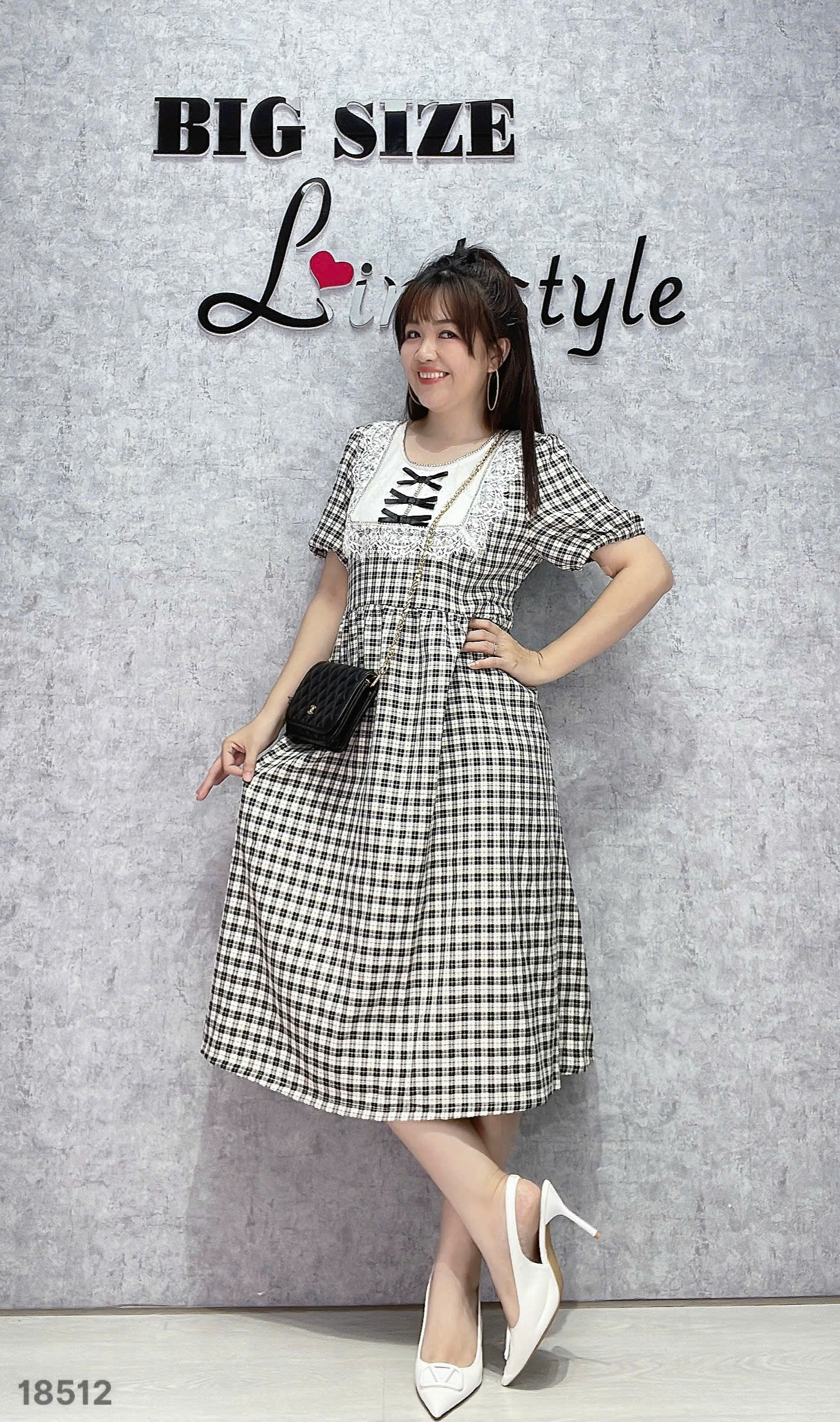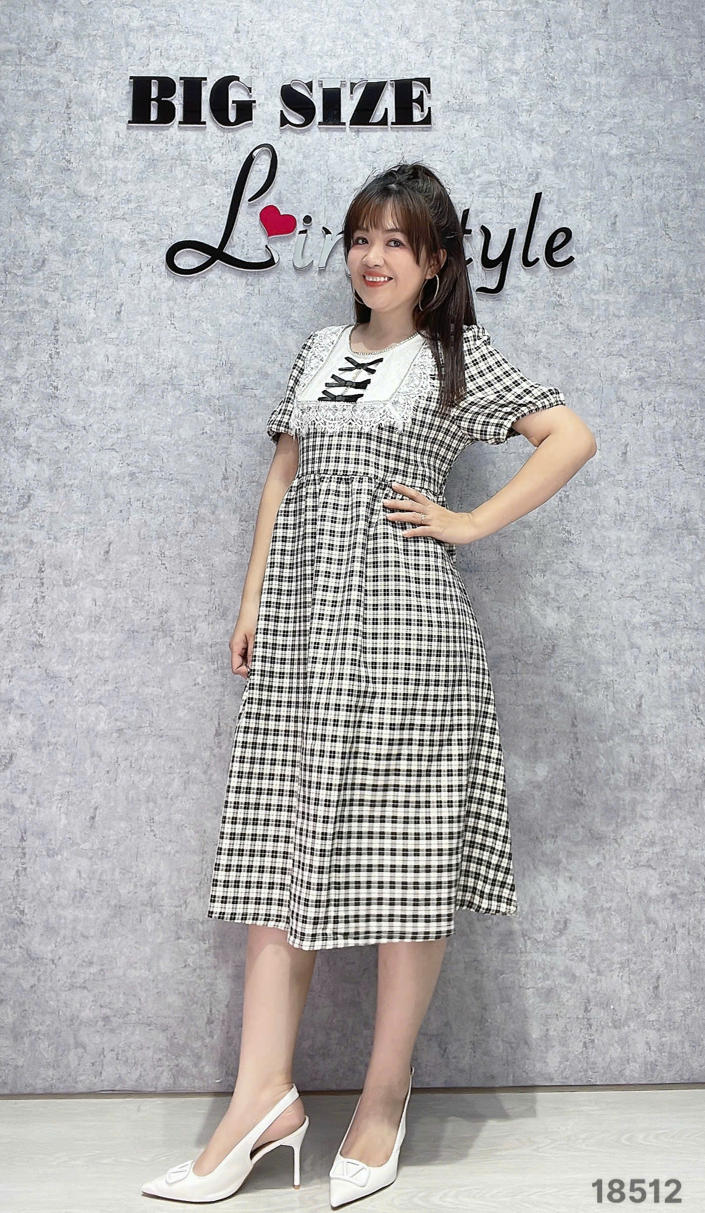 ✔ Đầm đi tiệc BIGSIZE QCCC Vải dập chất xịn trẻ trung,sang trọng CaRo - 18512