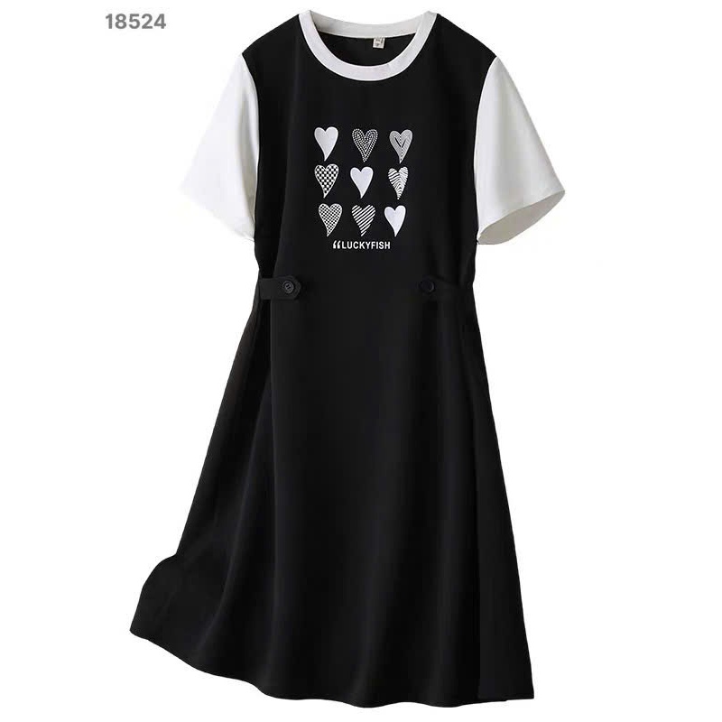 ✔ Đầm dáng A che bụng BIGSIZE Quảng Châu co giãn cổ tròn 9 tim- 18524